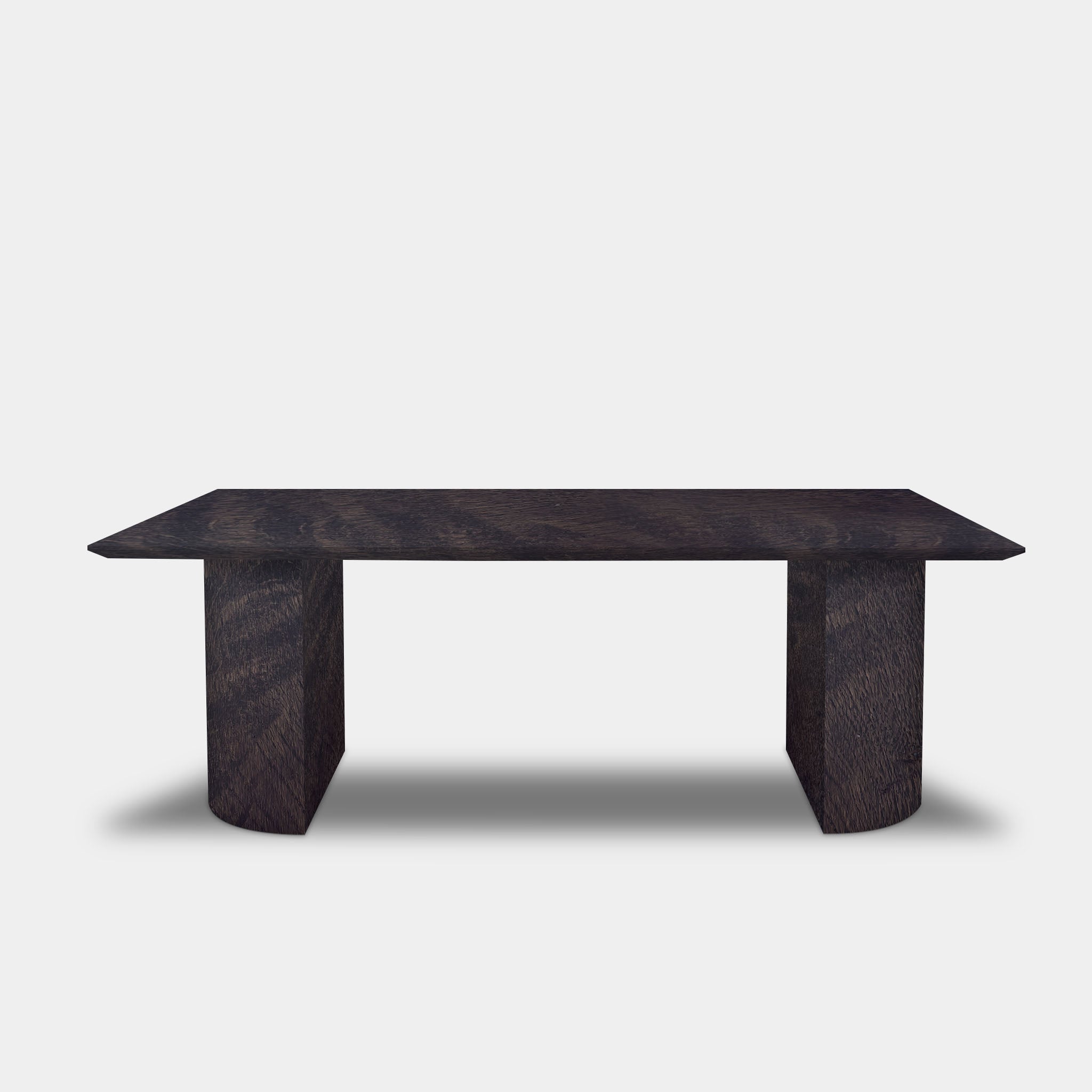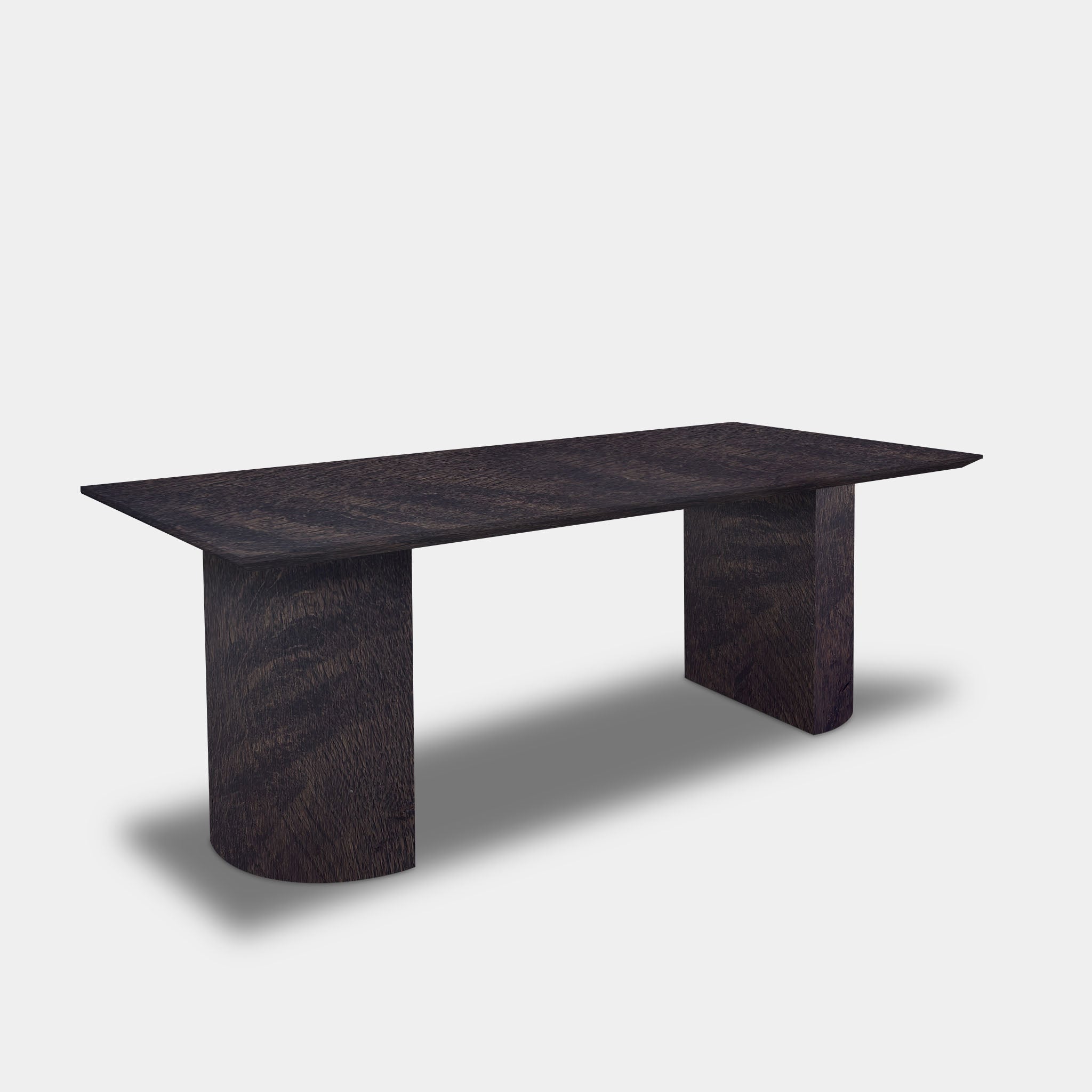 Deze massief eikenhouten tafel met een elegante halfronde poot wordt volledig afgewerkt in één kleur: dark grey. Het blad én het onderstel vormen samen een krachtig, harmonieus geheel dat rust en verfijning uitstraalt. Ideaal voor elk interieur waar warmte en design samenkomen.