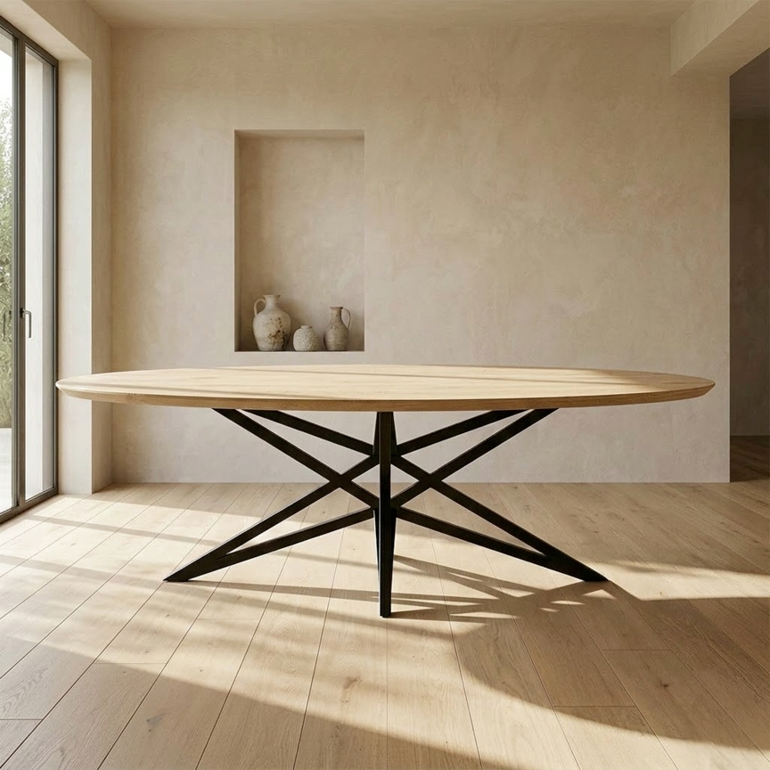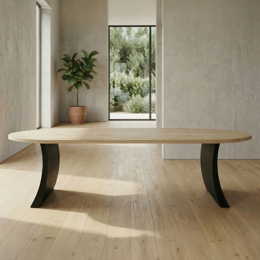 Plat ovaal Eikenhout - Onderstel Wave
