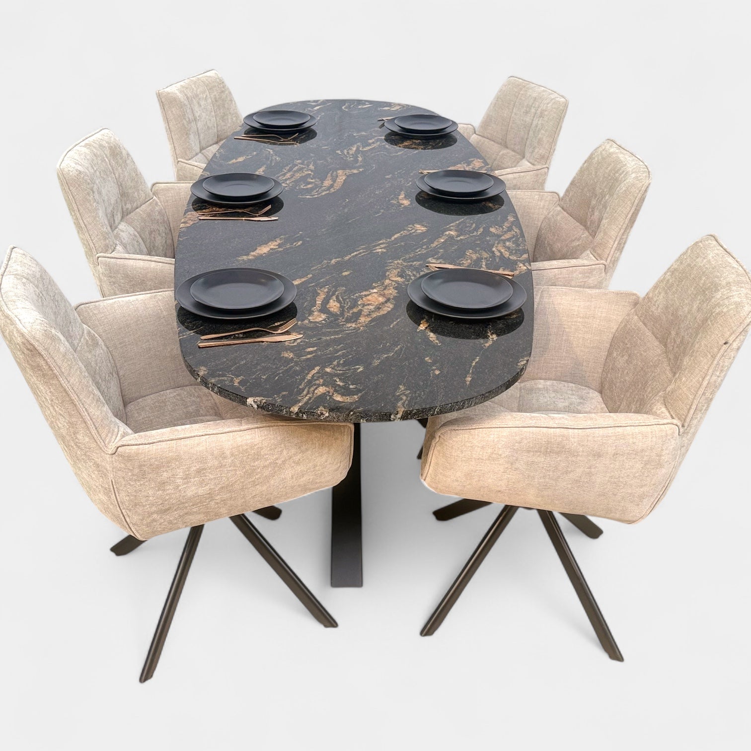 Belvedere Kwartsieten Eettafel – Deens Ovaal Design – NU VOOR €1699!
