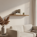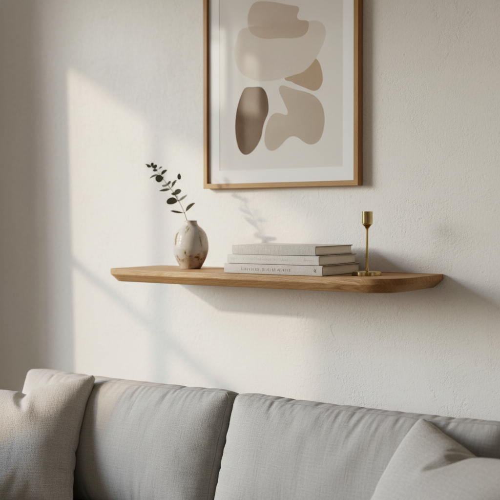 Een duurzame en stijlvolle eiken wandplank met verjongde rand die design en functionaliteit perfect combineert.