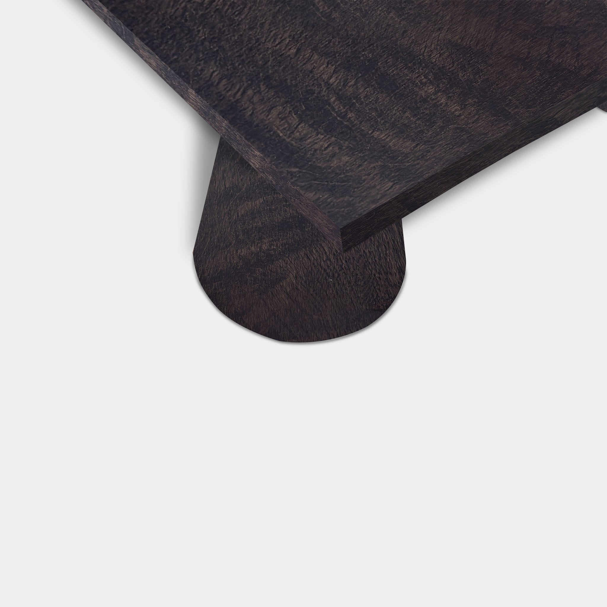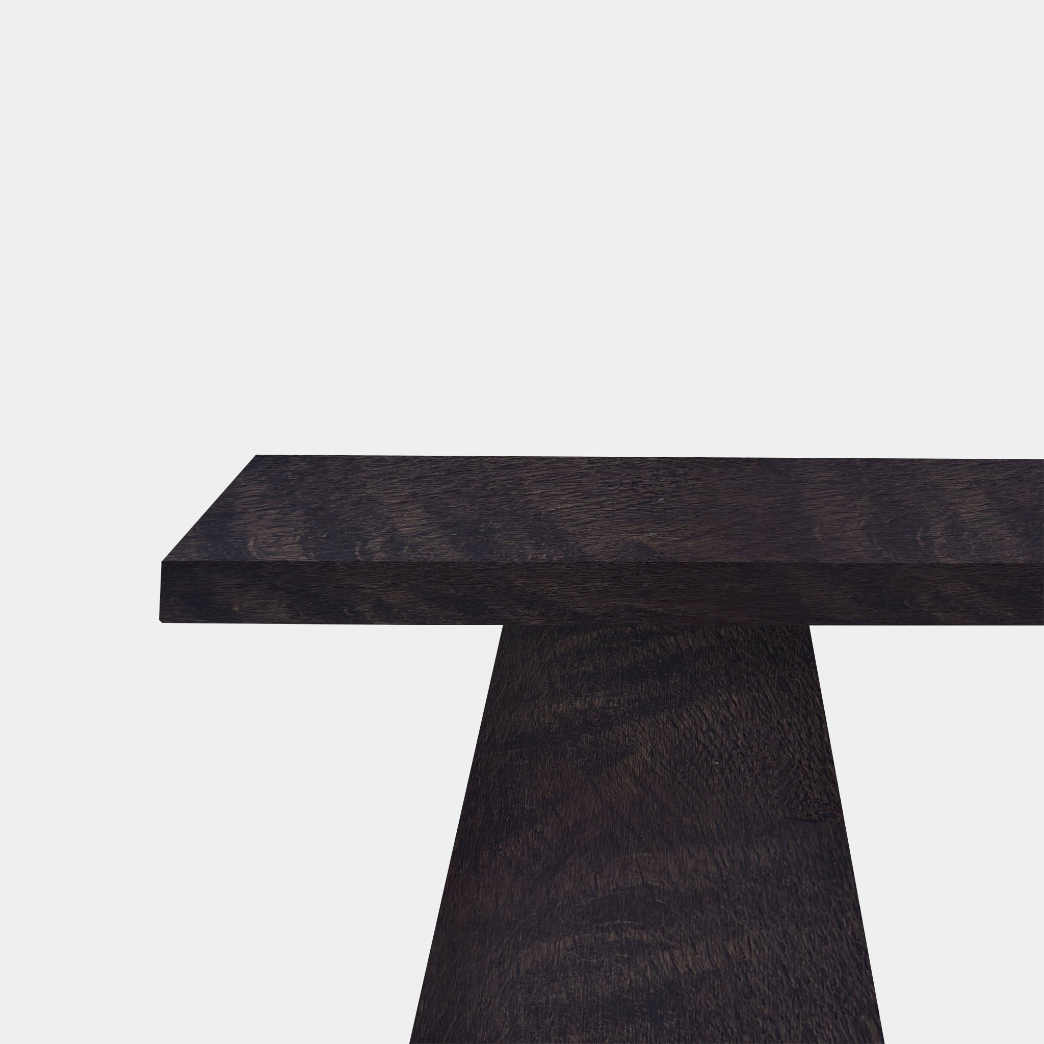 Deze krachtige en moderne boomstamtafel van massief eikenhout, afgewerkt in de stijlvolle kleur Dark Grey, is een statement van rust en karakter. Het natuurlijk gevormde blad rust op 4 slanke kegelpoot poten, volledig meegespoten in dezelfde tint voor een strak en samenhangend geheel.