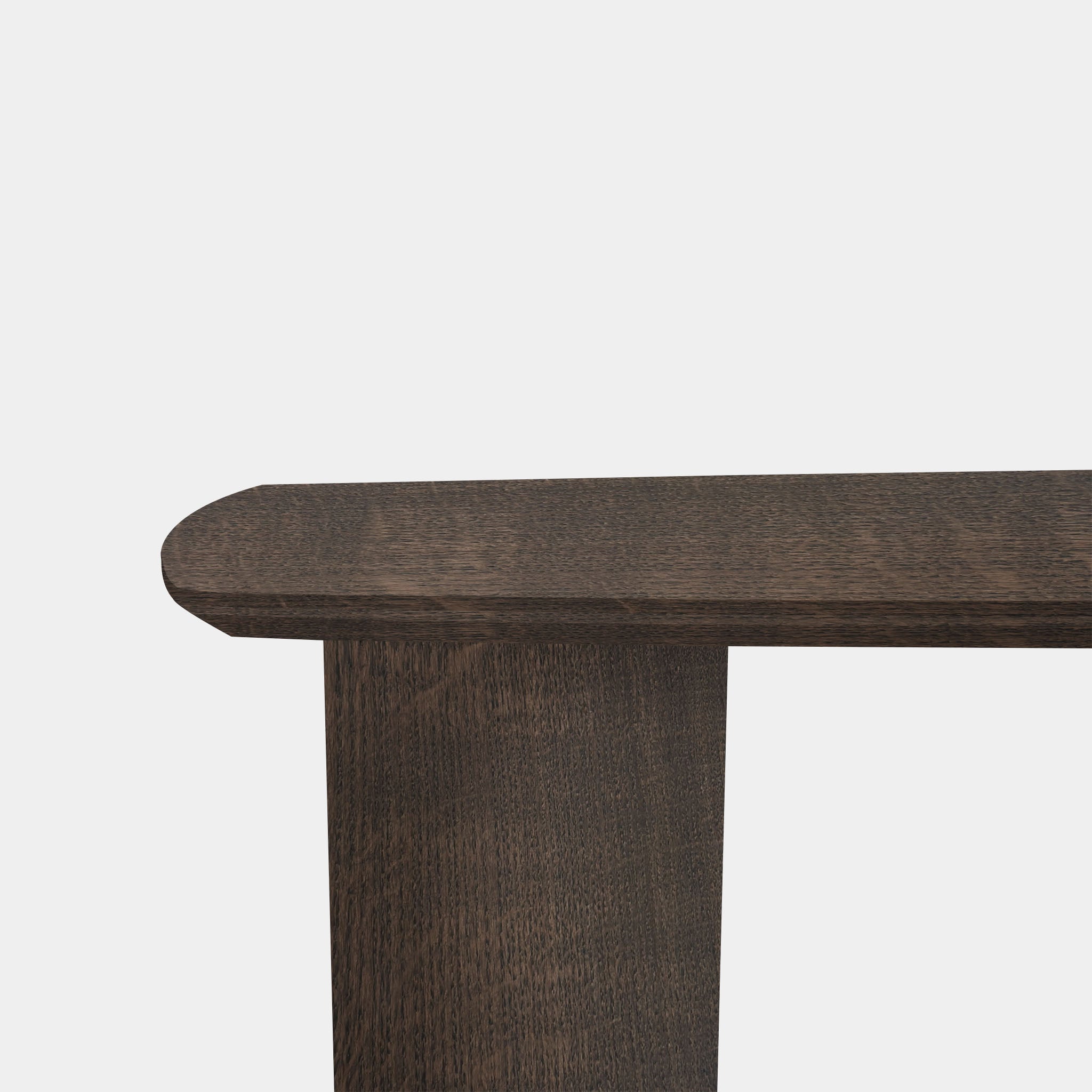 De kleur Zand benadrukt de houtstructuur op subtiele wijze en geeft deze tafel een frisse, natuurlijke uitstraling. Perfect voor interieurs waarin licht, eenvoud en vakmanschap centraal staan.