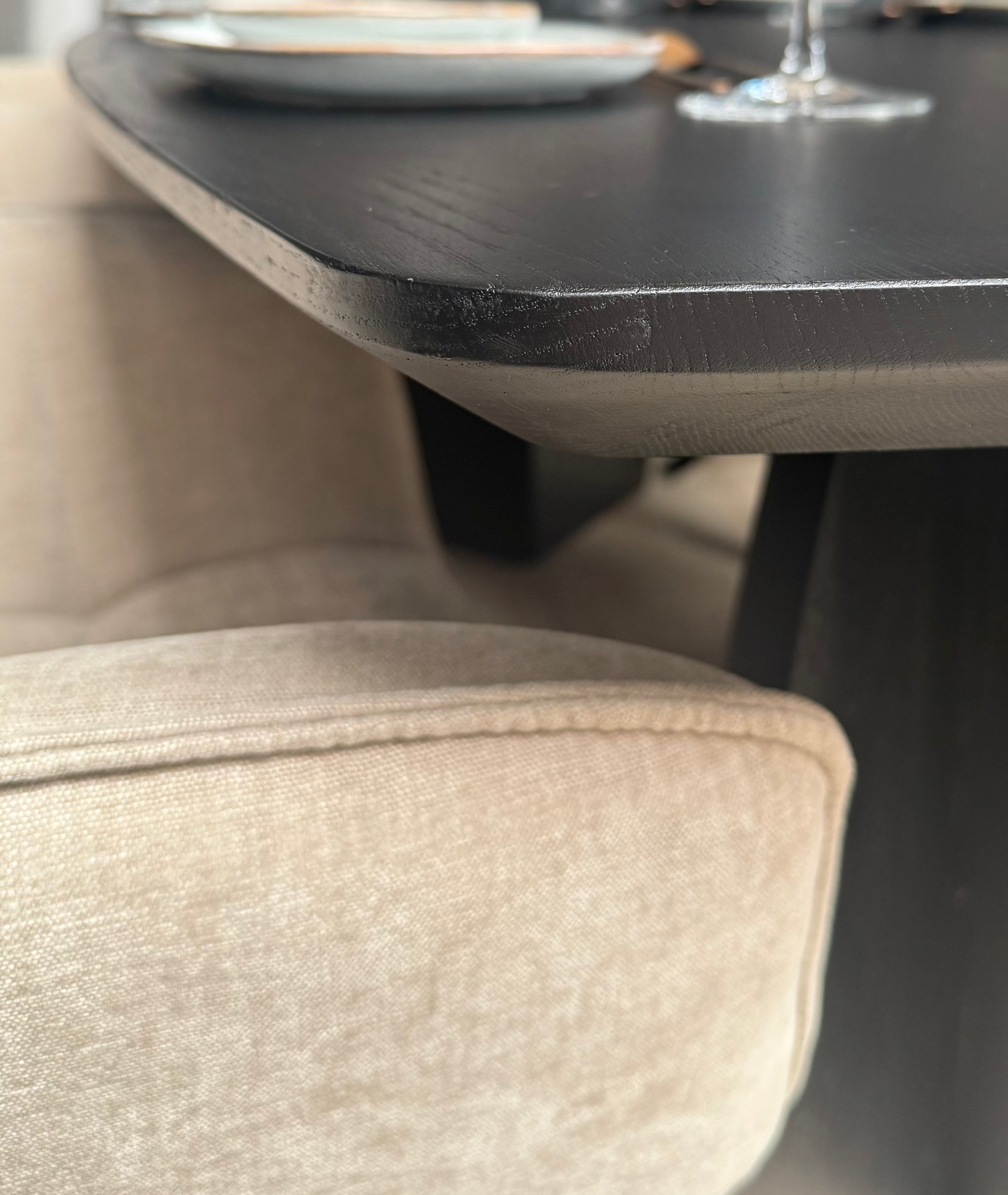 Combineer het beste van twee werelden met onze Deens ovale eettafel. De lange, rechte zijden bieden volop ruimte voor al je gasten, terwijl de zachte, afgeronde hoeken de sfeer open en vriendelijk houden. Uitgevoerd in een diepe, donkere eikenkleur straalt deze tafel pure klasse en warmte uit.