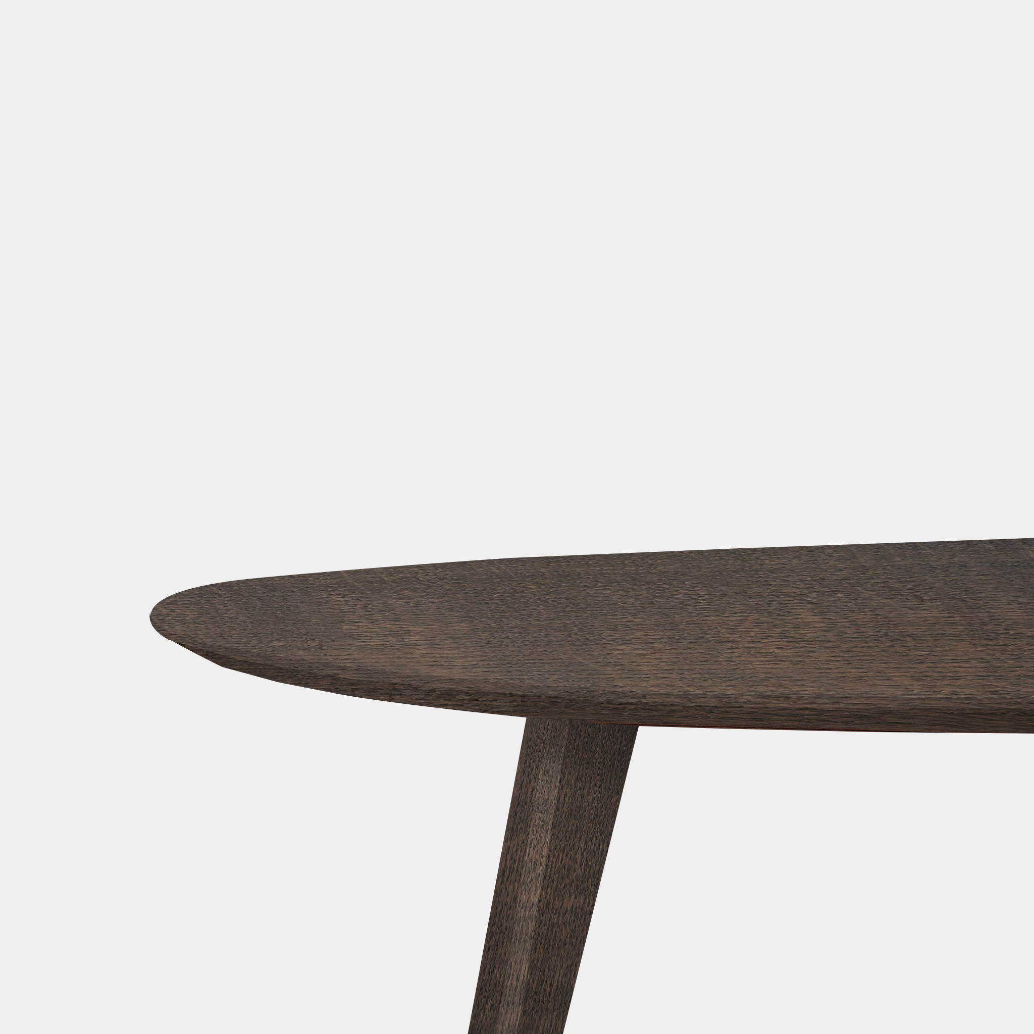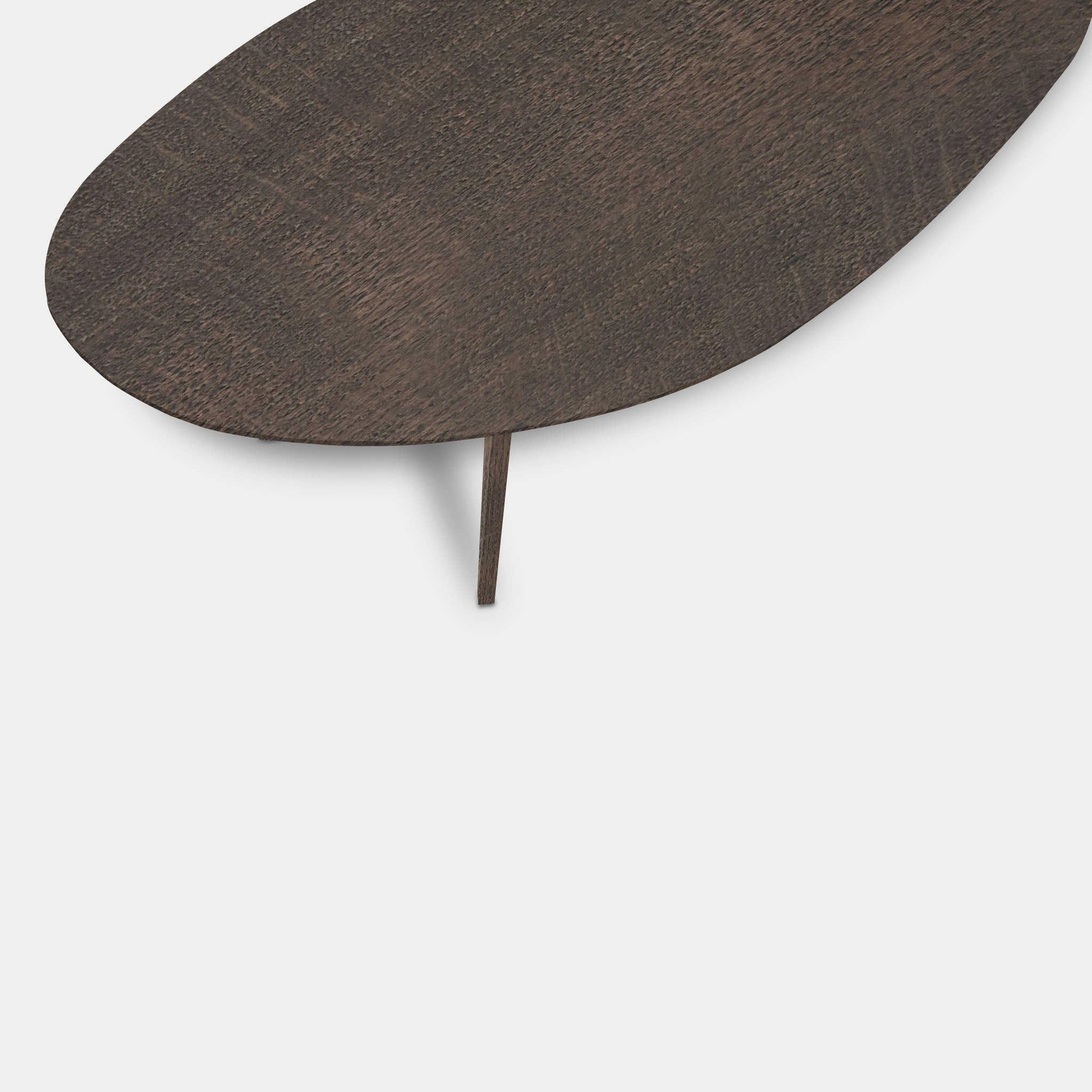Deze lichte en verfijnde organisch gevormde tafel van massief eikenhout, afgewerkt in de natuurlijke kleur Zand, combineert rust en elegantie met ambachtelijk design. Het vloeiende blad met zachte, asymmetrische lijnen zorgt voor een uitnodigend profiel, terwijl het volledig houten onderstel, meegespoten in dezelfde tint, zorgt voor een solide en harmonieus geheel.