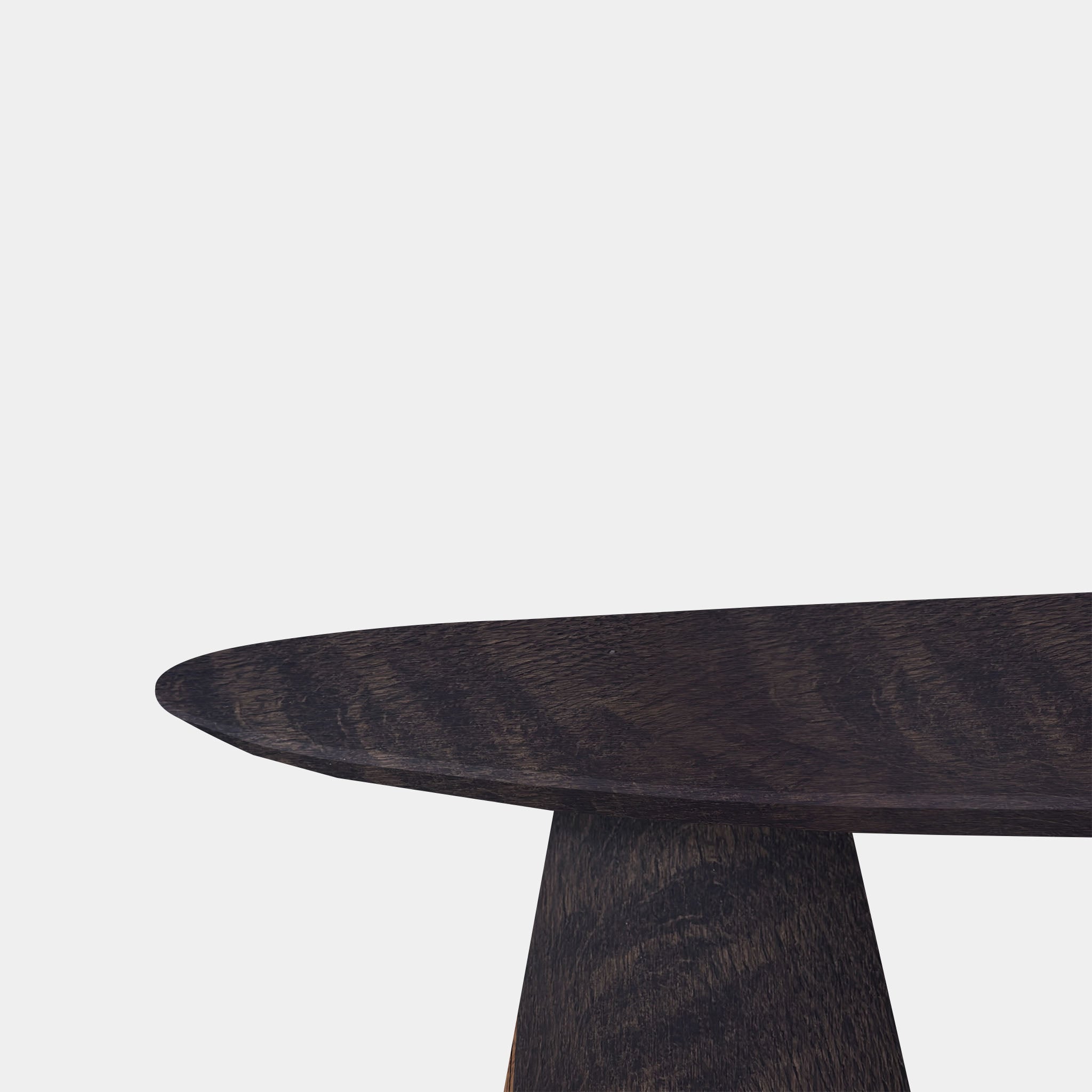 De kleur Dark Grey versterkt de houtnerf en maakt deze tafel tot een krachtige blikvanger in moderne of industriële interieurs waar natuurlijke materialen en strak design samenkomen.