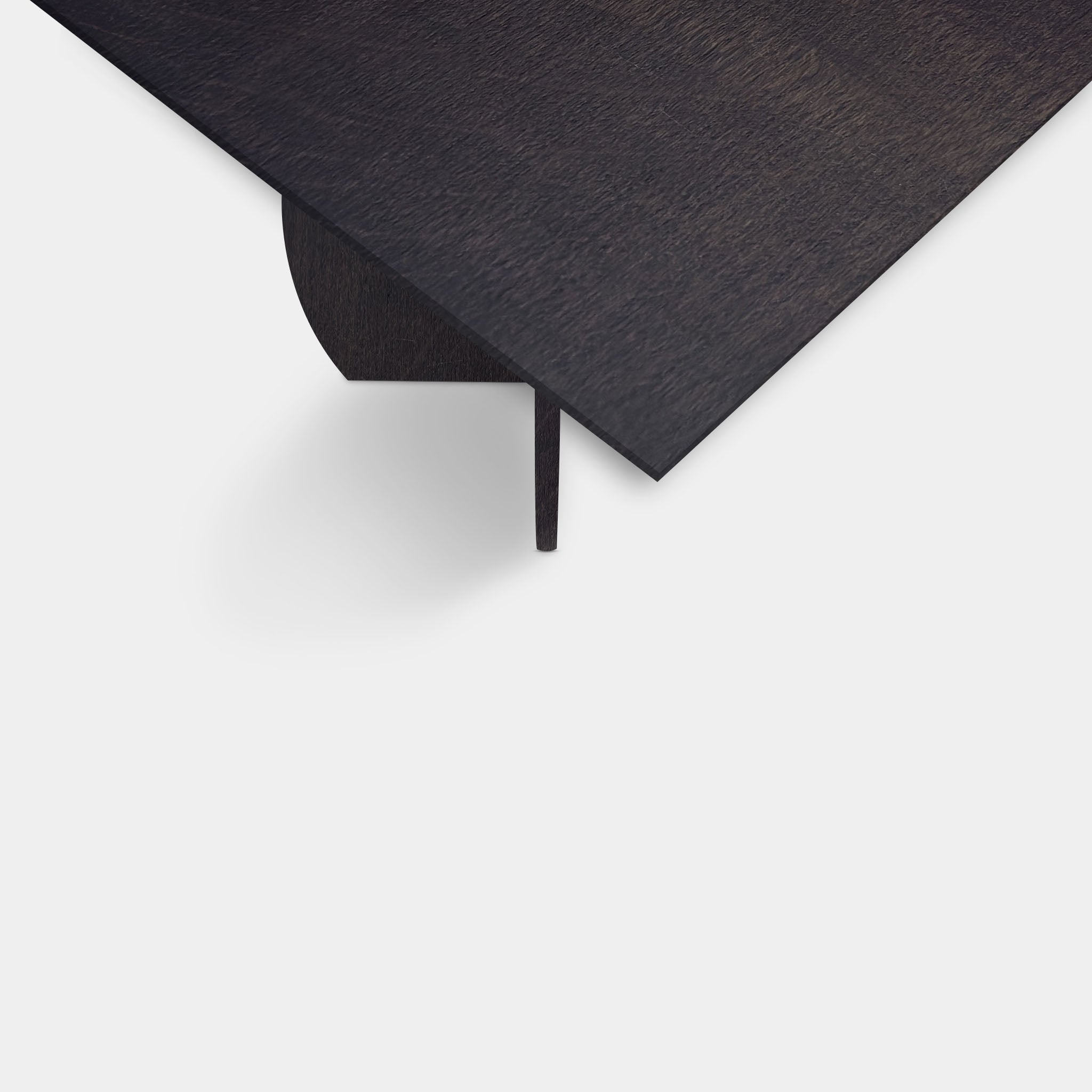 Deze massief eikenhouten tafel met een karaktervolle driehoek poot wordt volledig afgewerkt in de kleur night glow