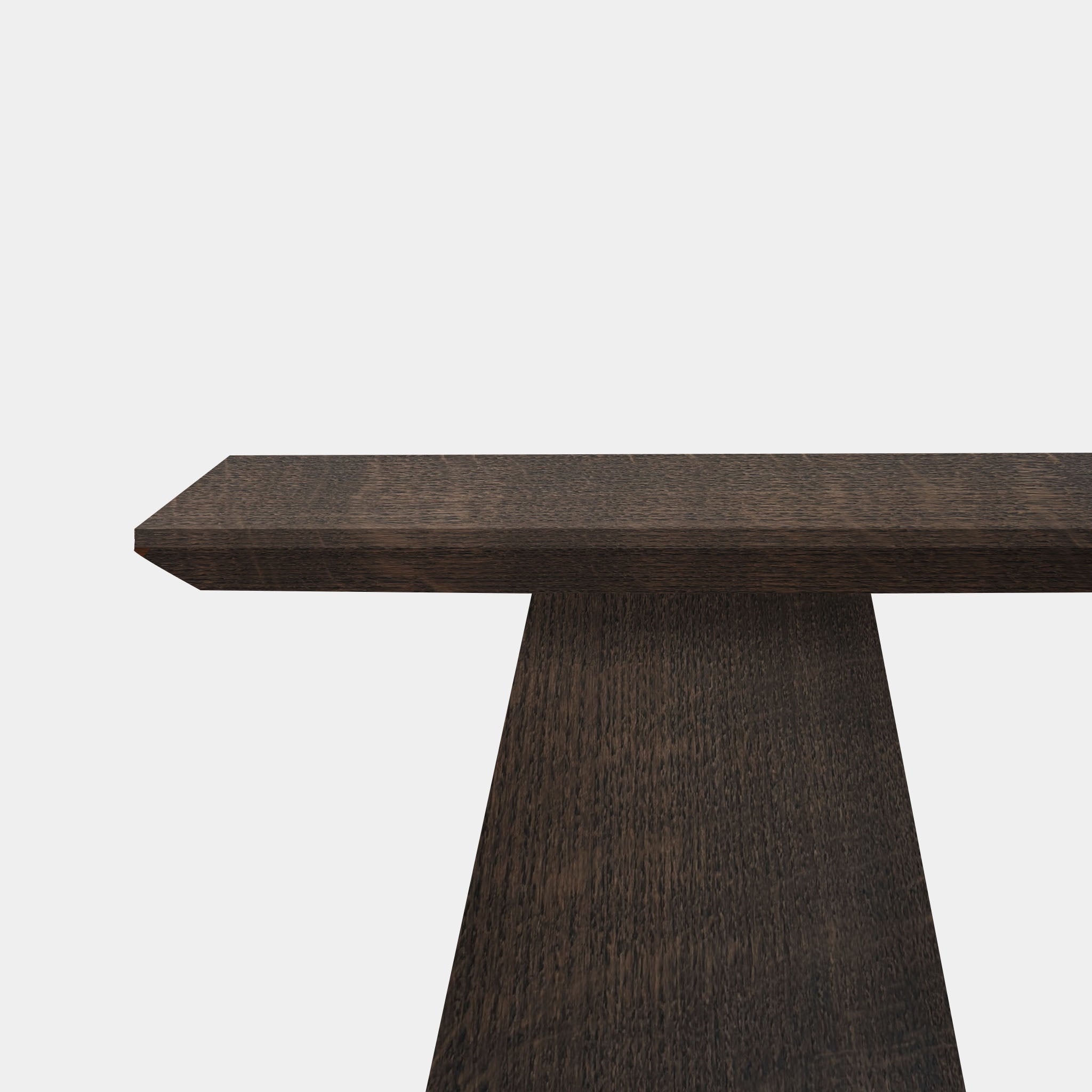 Deze elegante eikenhouten tafel met kegelvormige poten wordt volledig afgewerkt in de kleur zand. Het blad en onderstel vormen zo een strak geheel dat past in zowel moderne als klassieke interieurs.