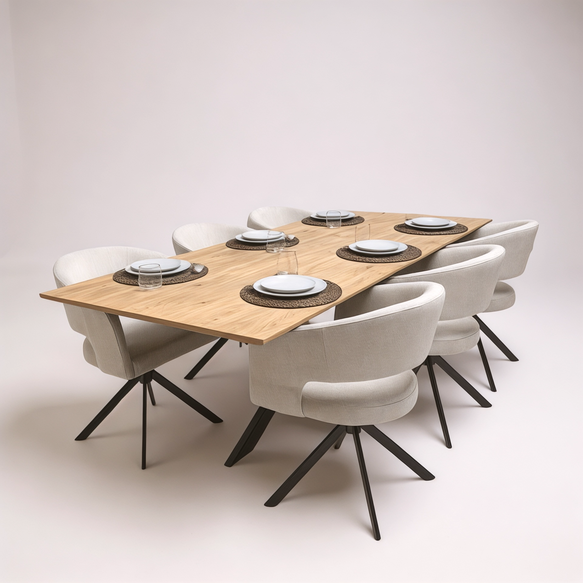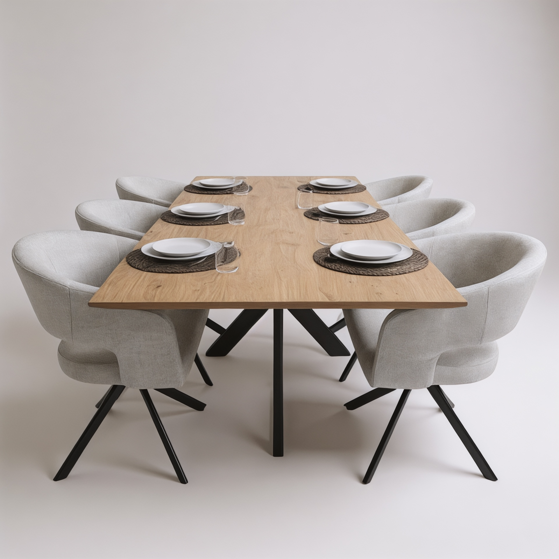 Het krachtige designstatement wordt gemaakt door de centrale matrixpoot. Deze moderne, industriële basis geeft een eigentijdse draai aan het klassieke ontwerp en zorgt bovendien voor maximale beenruimte. Dit is een tafel die moeiteloos generaties meegaat: stevig, stijlvol en de vanzelfsprekende plek voor alle belangrijke momenten in het leven.
