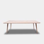 Ben je op zoek naar een stijlvolle tafel die rust en karakter uitstraalt? Deze rechthoekige eikenhouten tafel met een konisch houten onderstel combineert Scandinavische eenvoud met tijdloze klasse.