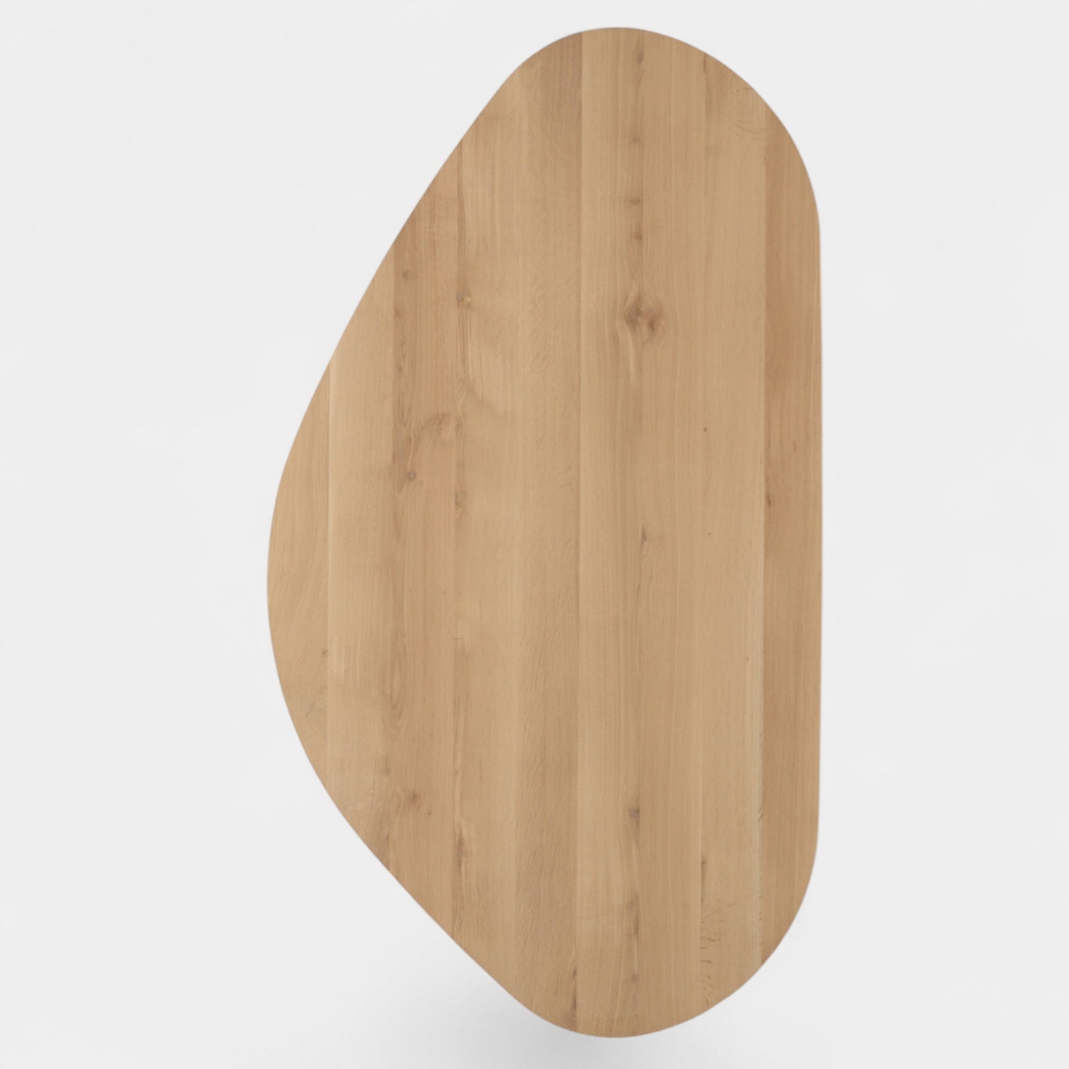 Op zoek naar een los kiezelvormig tafelblad van massief eiken? Dit unieke kiezelvormige tafelblad van 4 cm dik heeft organische lijnen en geeft jouw interieur een speelse, natuurlijke uitstraling. Ideaal om zelf een tafel samen te stellen zonder onderstel.