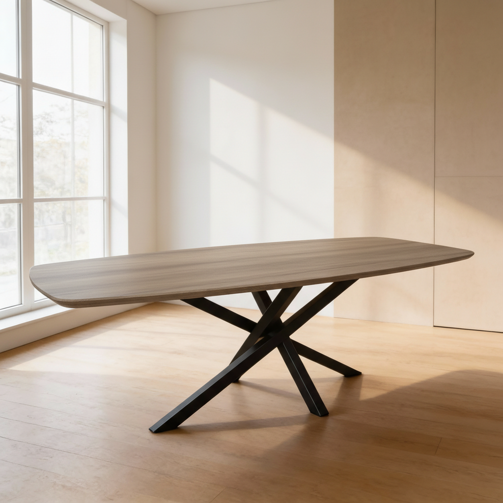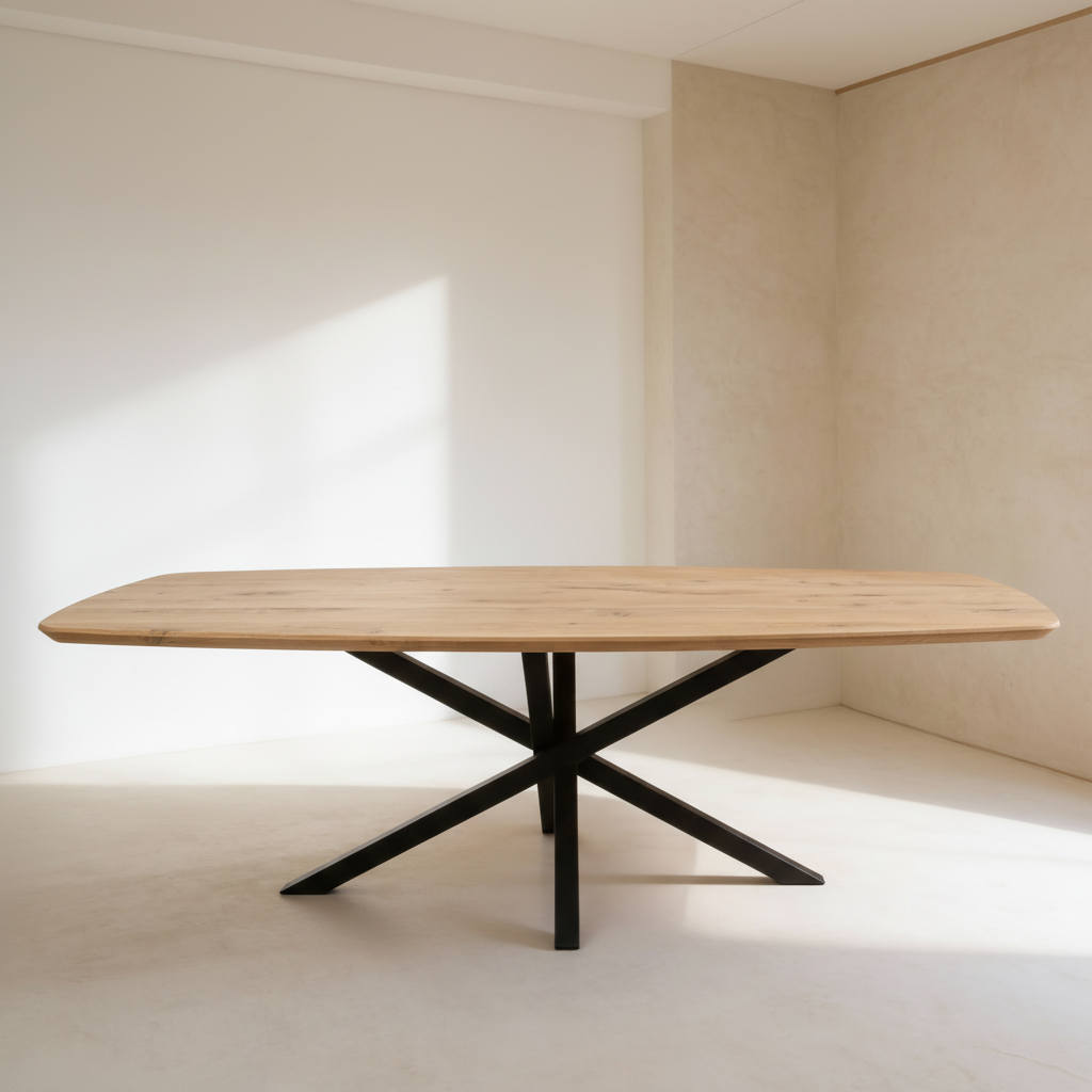 Ontdek ons Deens ovaal tafelblad van 40 mm massief Europees eiken. De verfijnde verjongde rand geeft het blad een moderne, tijdloze uitstraling die perfect past in Scandinavische en minimalistische interieurs.