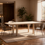 Ontdek onze rechthoekige eettafel van 40 mm massief Europees eiken, ontworpen voor liefhebbers van puur materiaal en tijdloos vakmanschap. Het royale tafelblad straalt rust en kwaliteit uit, met een verfijnde afwerking die perfect aansluit bij Scandinavische, Japandi en minimalistische interieurs.