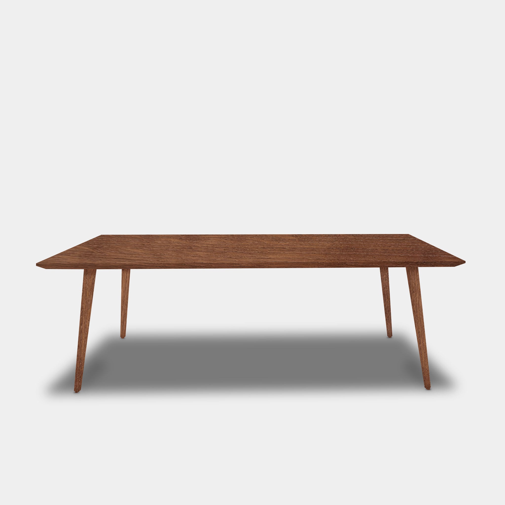 Looking for a warm, modern table in your favorite shade? This oak table with a tapered base is a real eye-catcher, perfectly finished in a single color for a sleek and stylish look.
