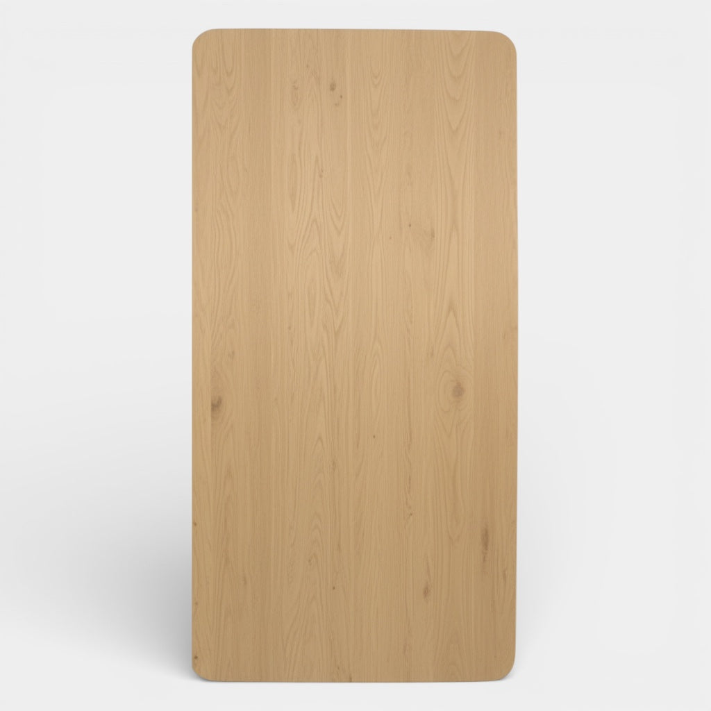 The two slender triangular legs give the table a modern, airy look and provide a sturdy base. This is the perfect focal point for any gathering, whether you're having a leisurely dinner, crafting with the kids, or chatting with friends. A stylish and practical choice that will enhance your interior.