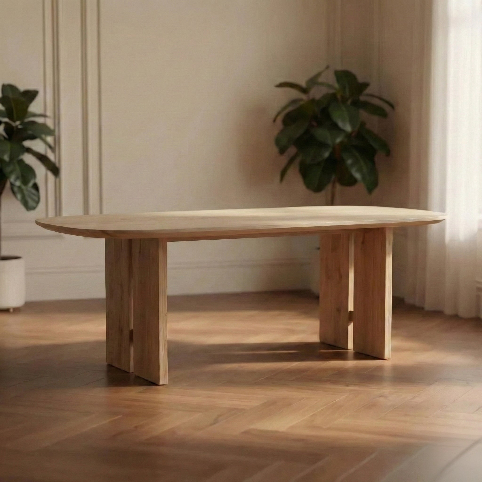 Een eiken eettafel die perfect past in een modern, Scandinavisch of landelijk interieur.
