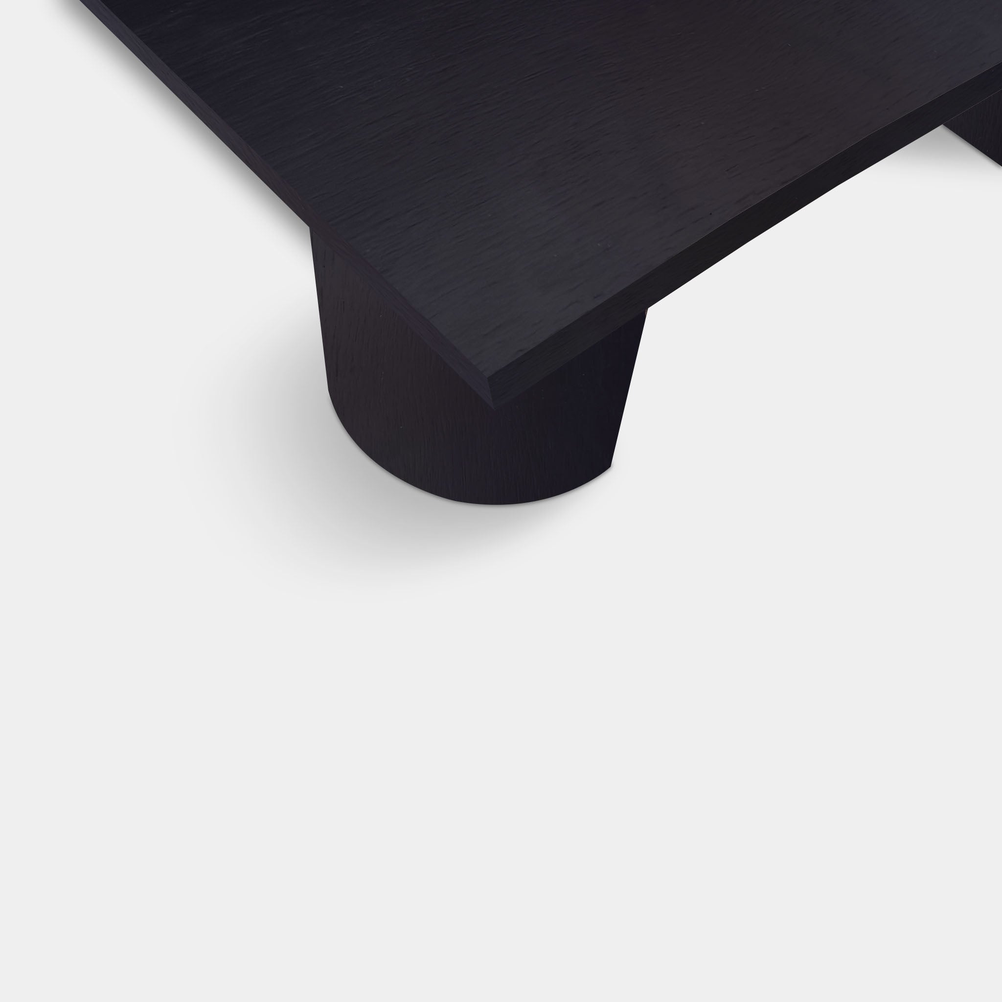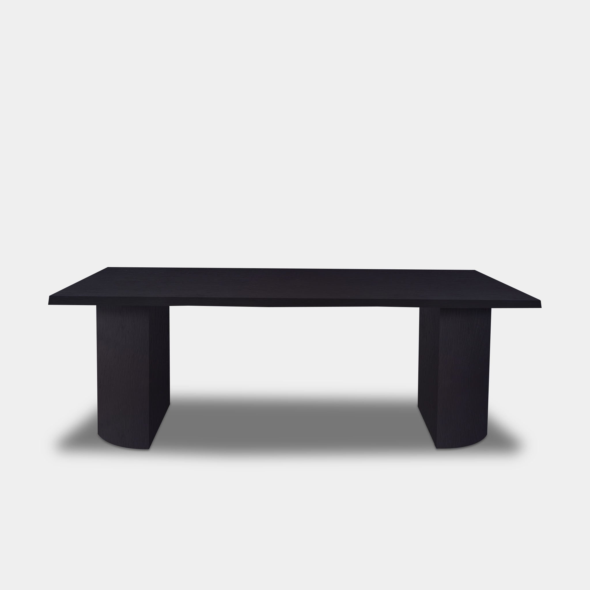 This timeless This solid oak tree trunk table, finished in the classic Dark Oak color, exudes strength, warmth, and refinement. The naturally shaped top and sturdy semi-circular base are fully painted in the same deep shade, creating a balanced and stylish whole.