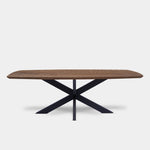 This warm and inviting Danish oval table, crafted from solid oak and finished in a rich Cinnamon, effortlessly blends natural elegance and contemporary design. The rounded top creates a soft, inviting look, while the black matrix base adds a modern and bold touch.