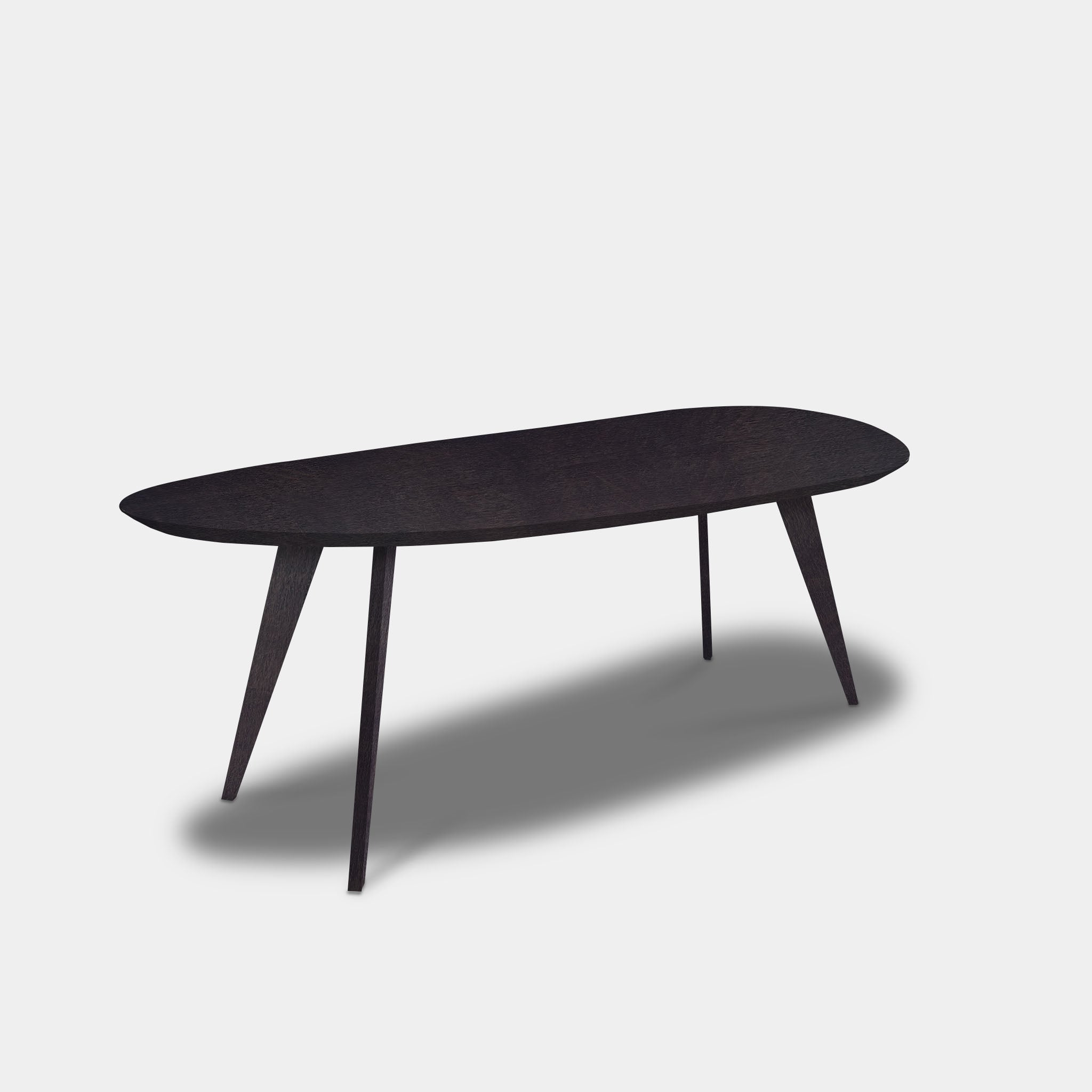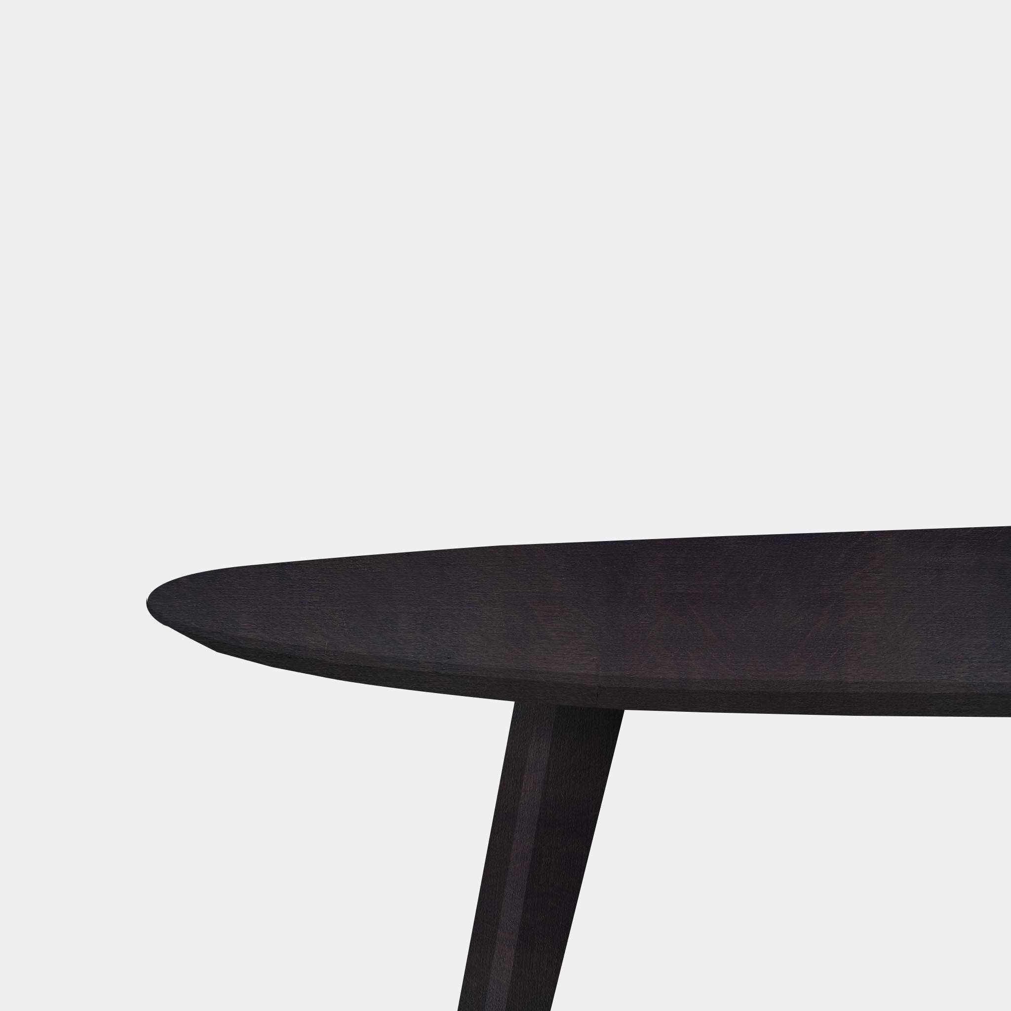 This atmospheric, organically shaped table made of solid oak, finished in the deep and warm Night Glow color, combines natural elegance with timeless craftsmanship. The asymmetrically shaped top exudes tranquility and softness, while the solid wood base, spray-painted in the same color, provides a stable and visually powerful foundation.