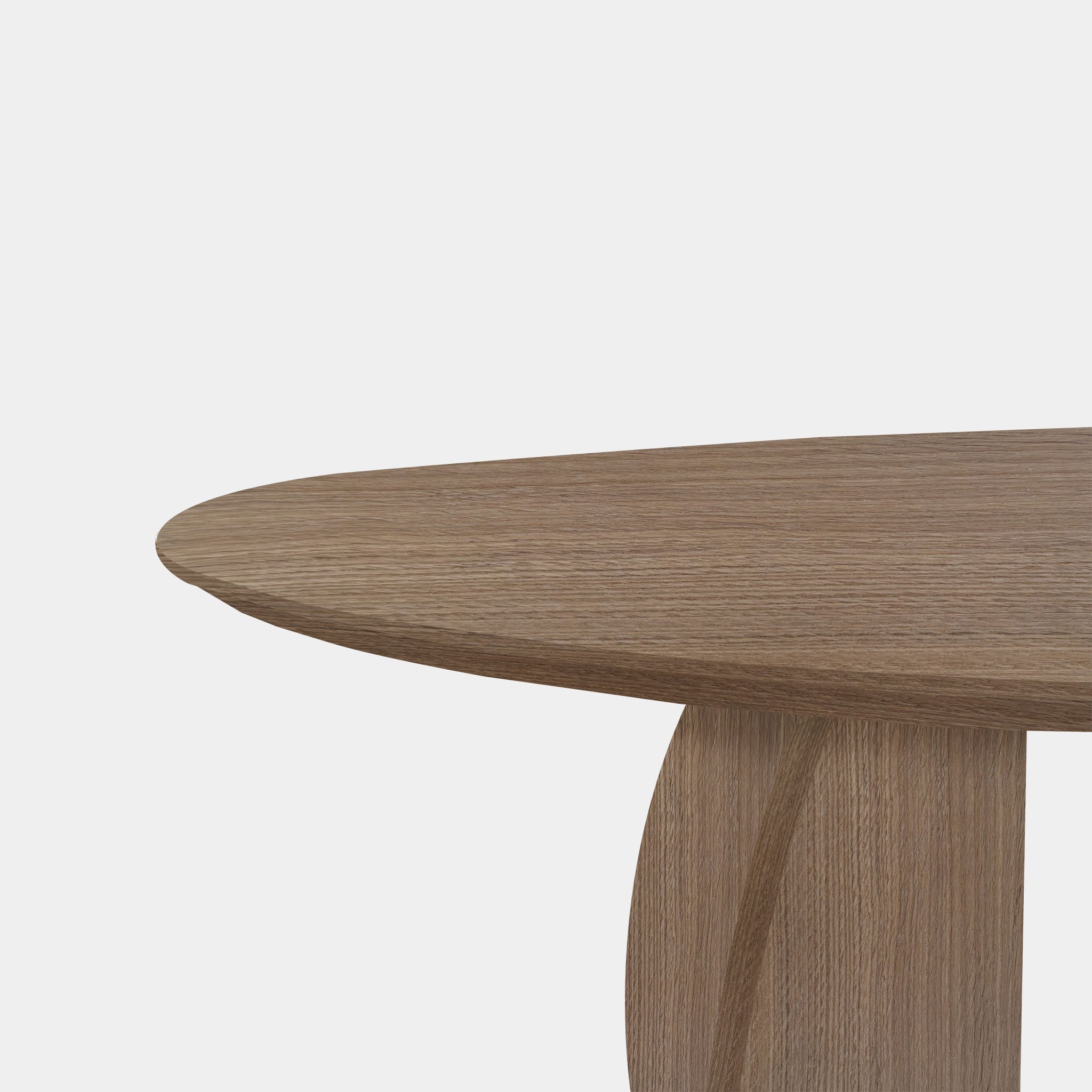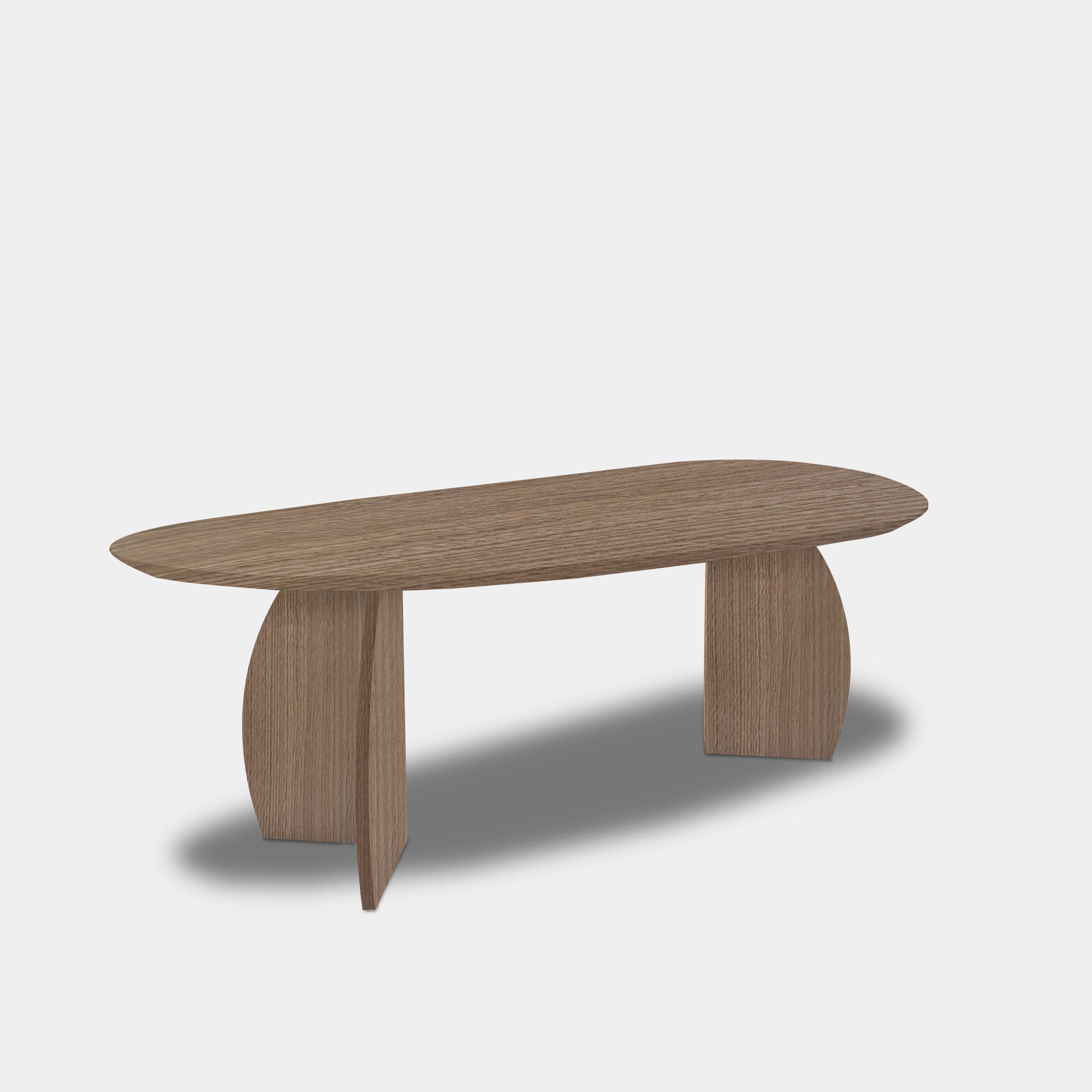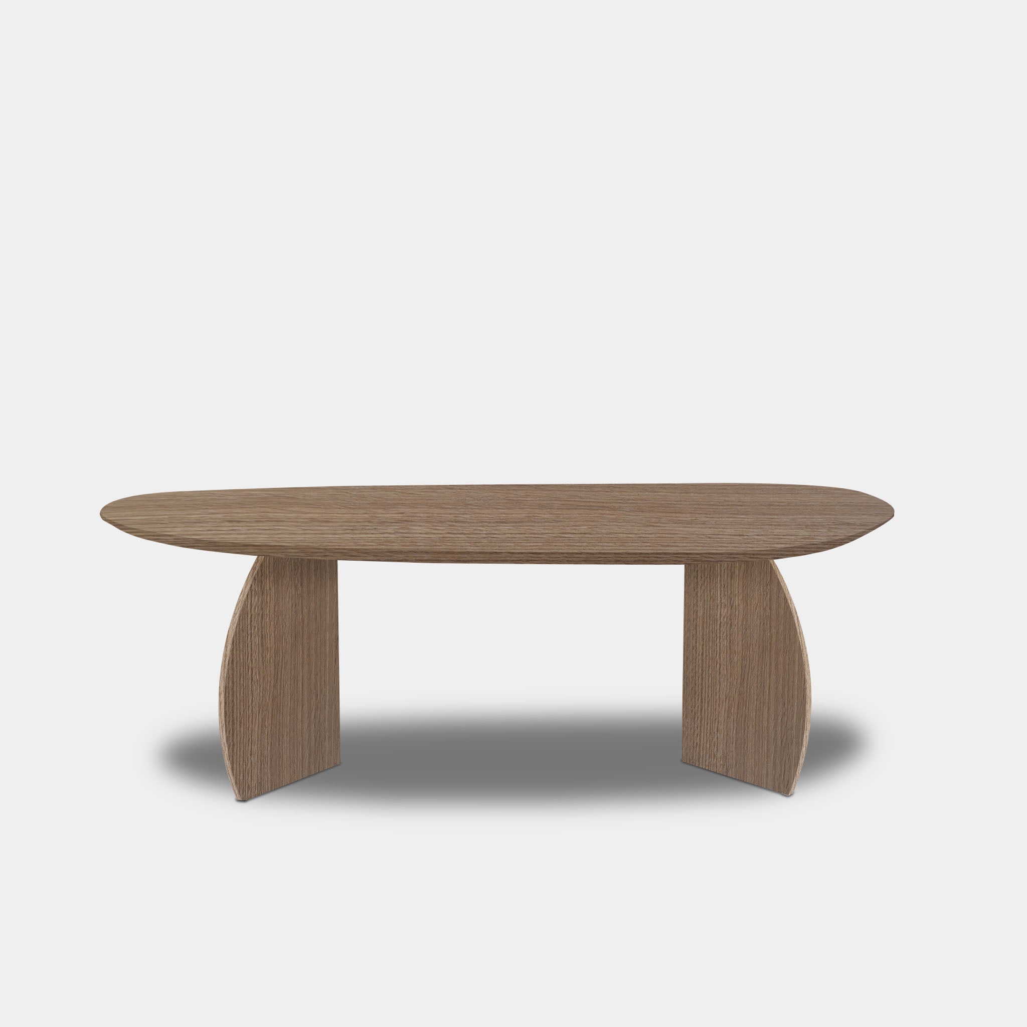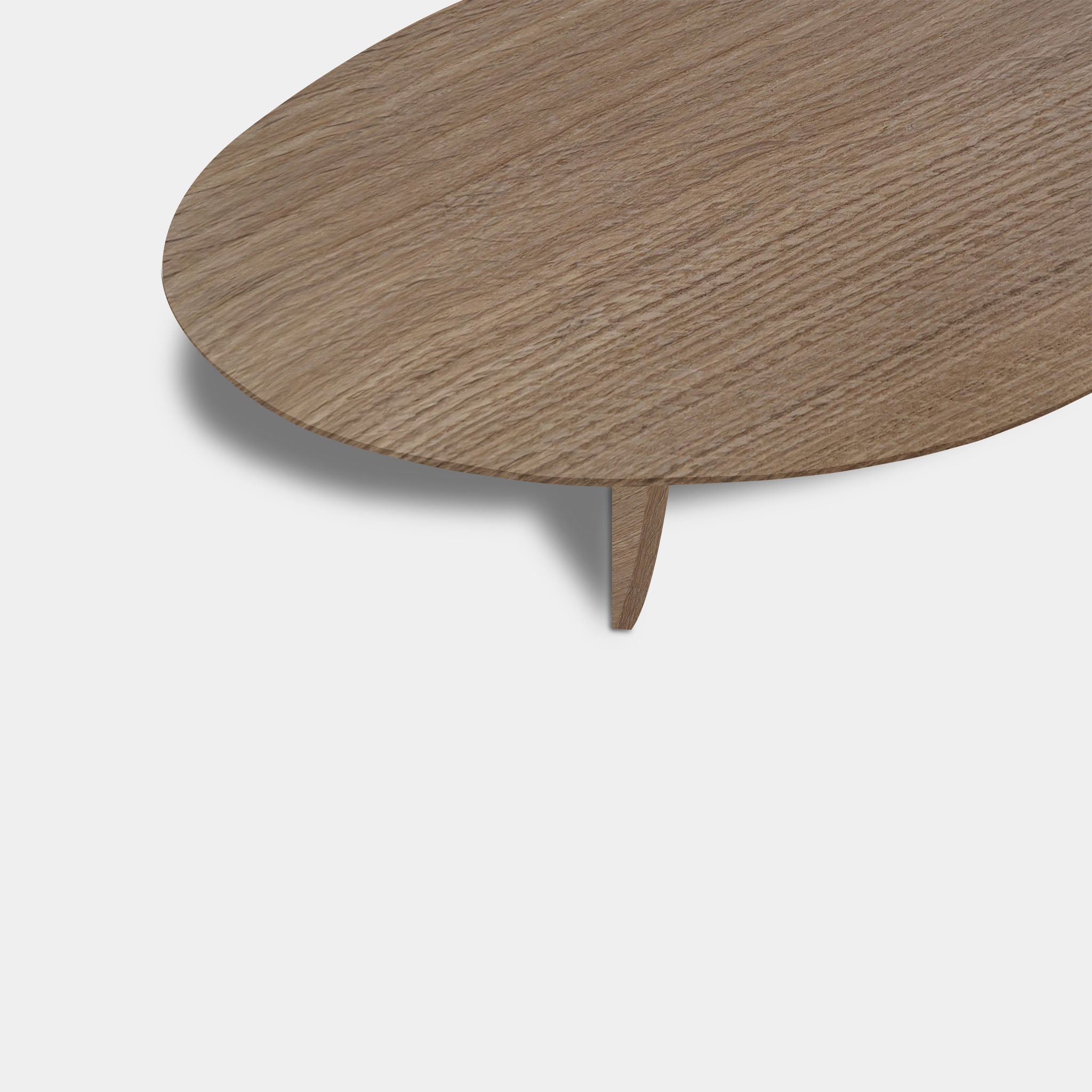 This light and refined, organically shaped table in solid oak, finished in the natural shade of Pura Natura, combines soft shapes with Scandinavian elegance. The flowing top creates a playful and inviting silhouette, while the pair of triangular legs, spray-painted in the same color, creates a stable and visually balanced base.