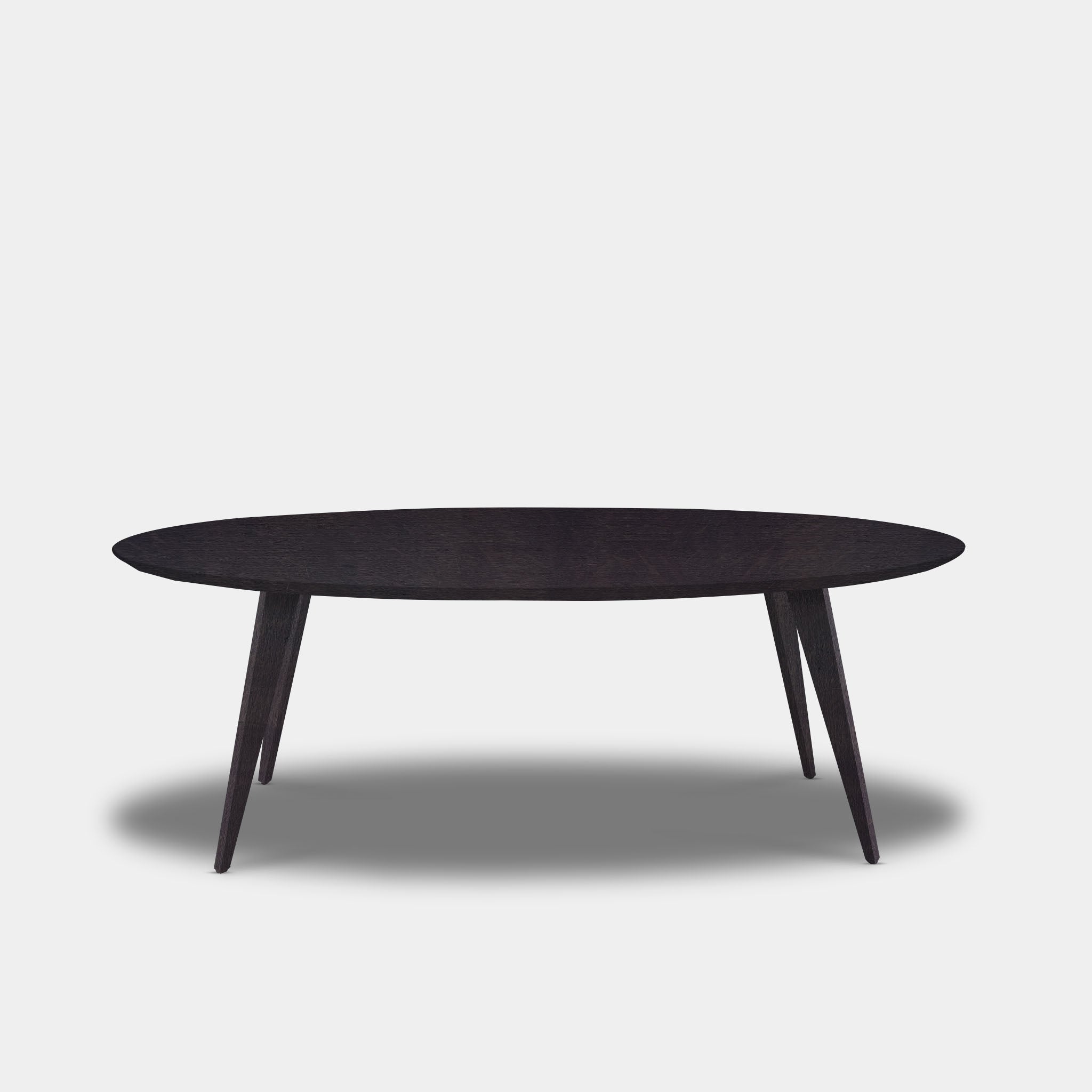 This atmospheric oval table, crafted from solid oak and finished in the deep, warm Night Glow color, exudes elegance, character, and craftsmanship. Its flowing, rounded shape gives the table a soft, inviting appearance, while the robust, solid wood base, spray-painted in the same color, creates a strong and harmonious whole.