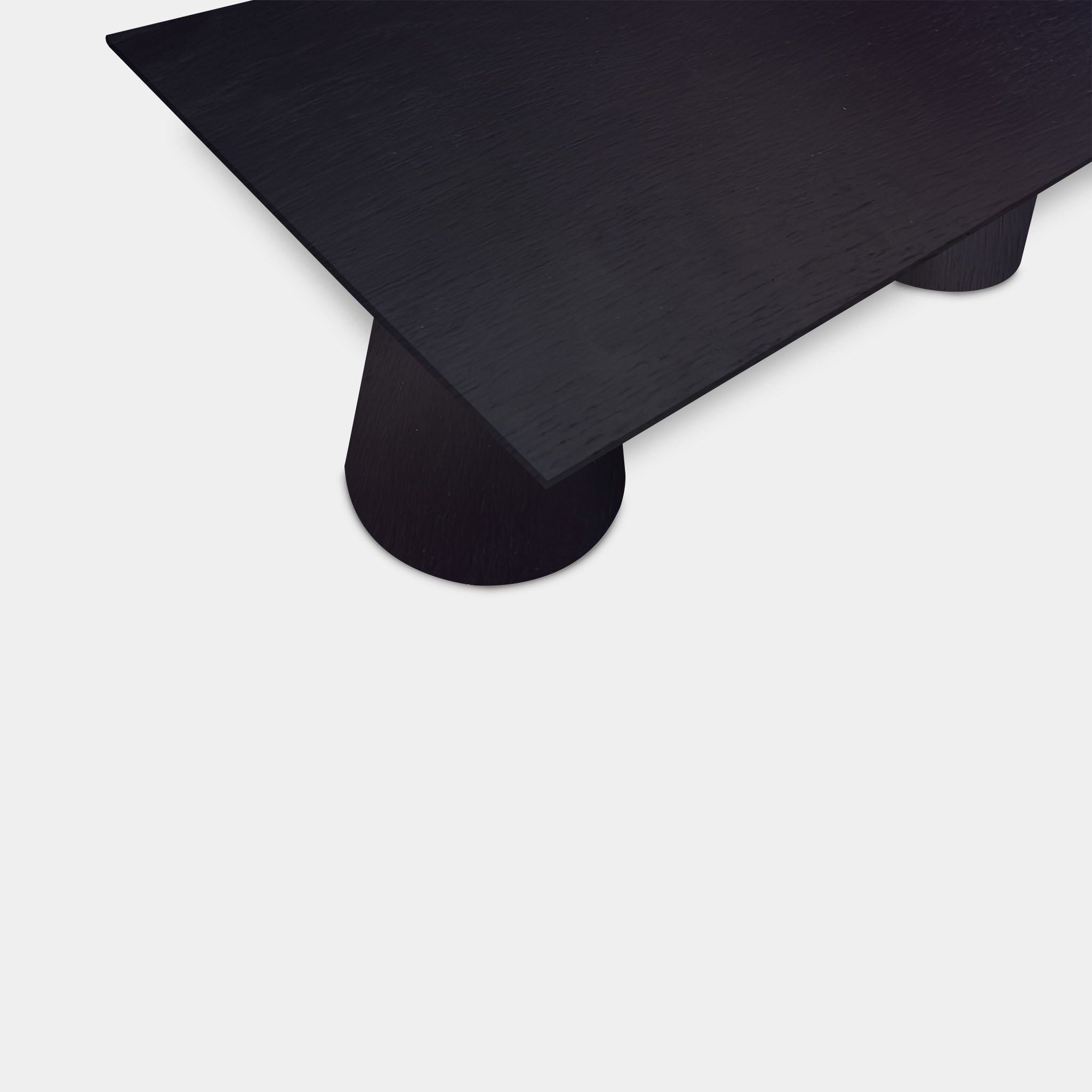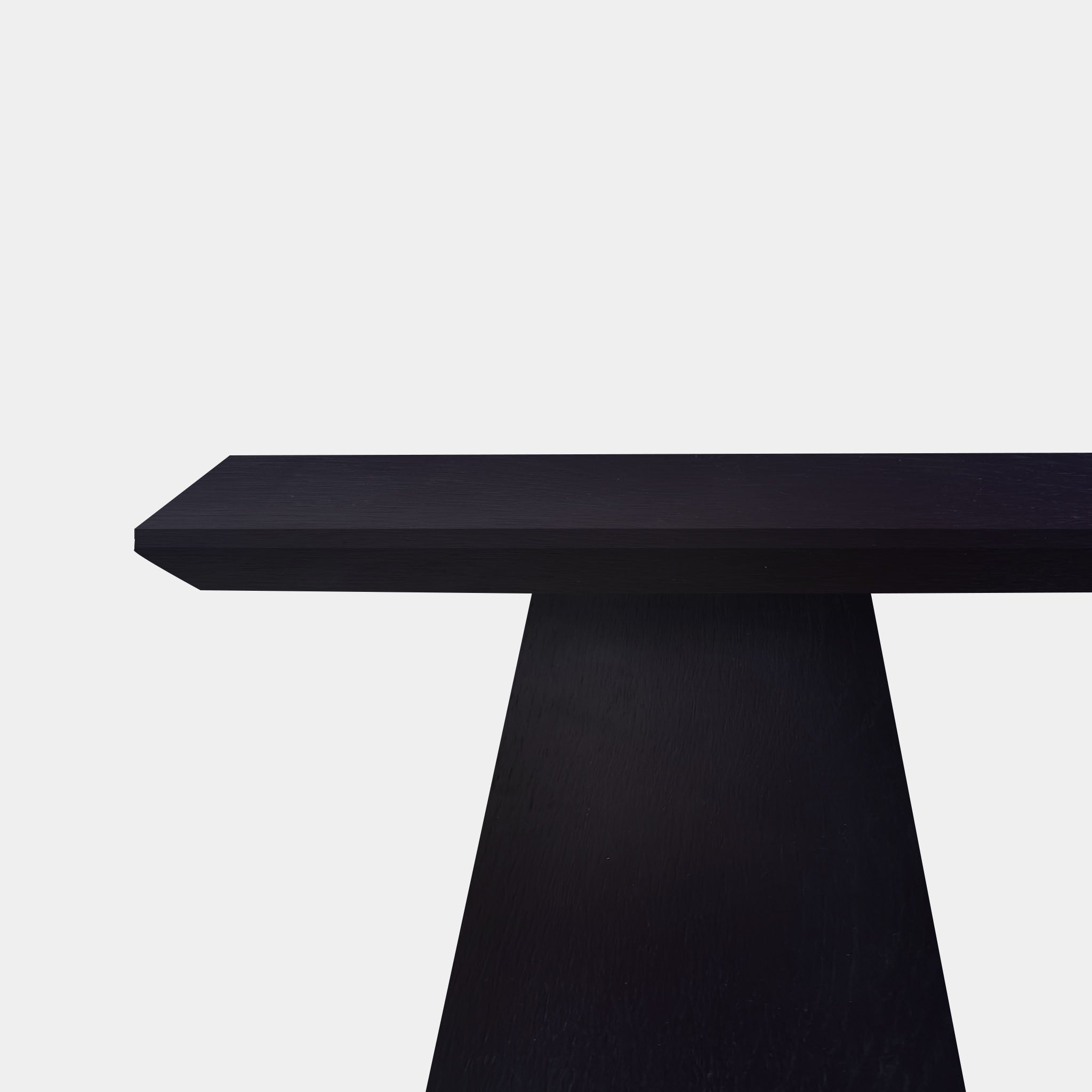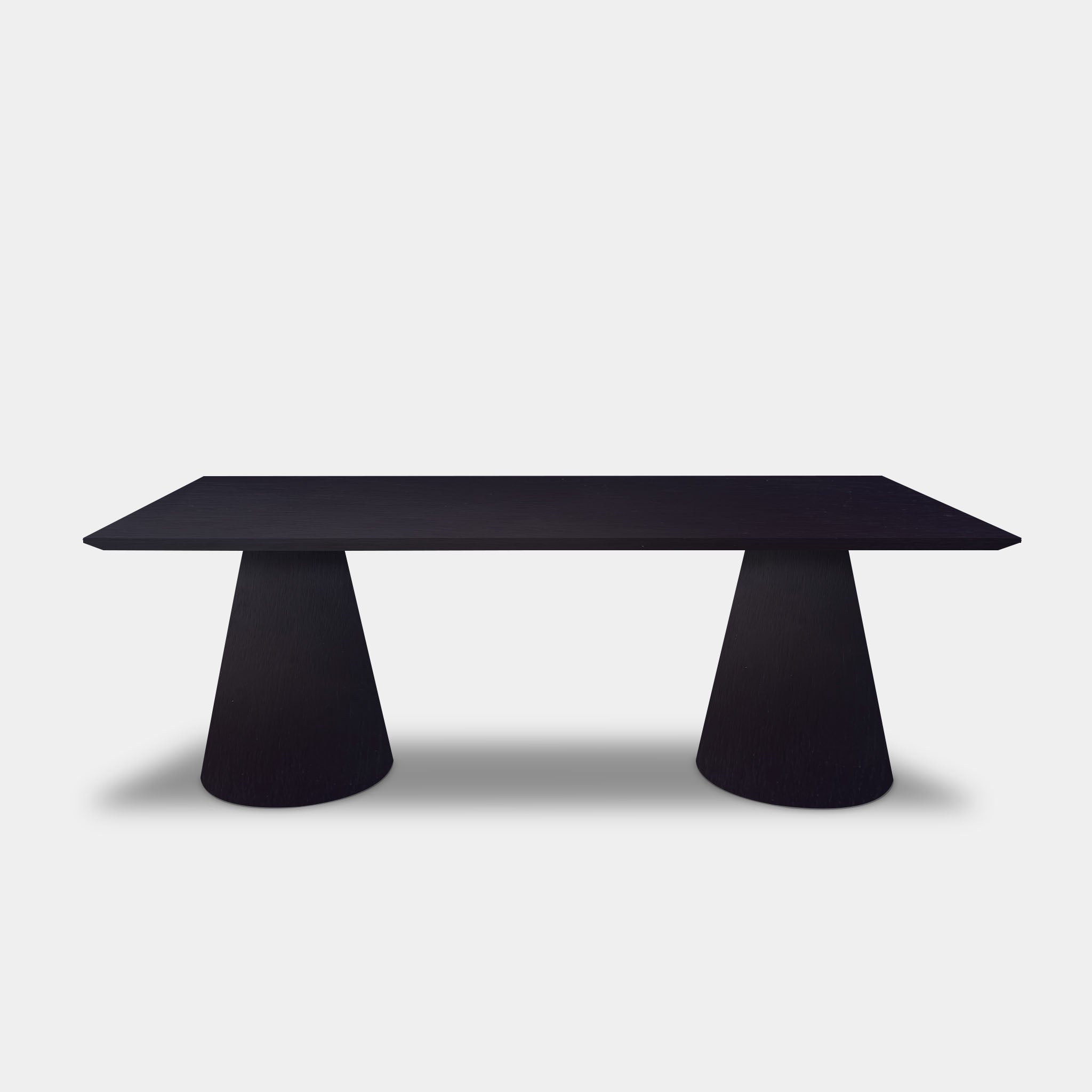 Cette élégante table en chêne aux pieds coniques est entièrement réalisée en chêne foncé . Le plateau et le piètement forment un ensemble élégant qui s'intègre aussi bien aux intérieurs modernes que classiques.