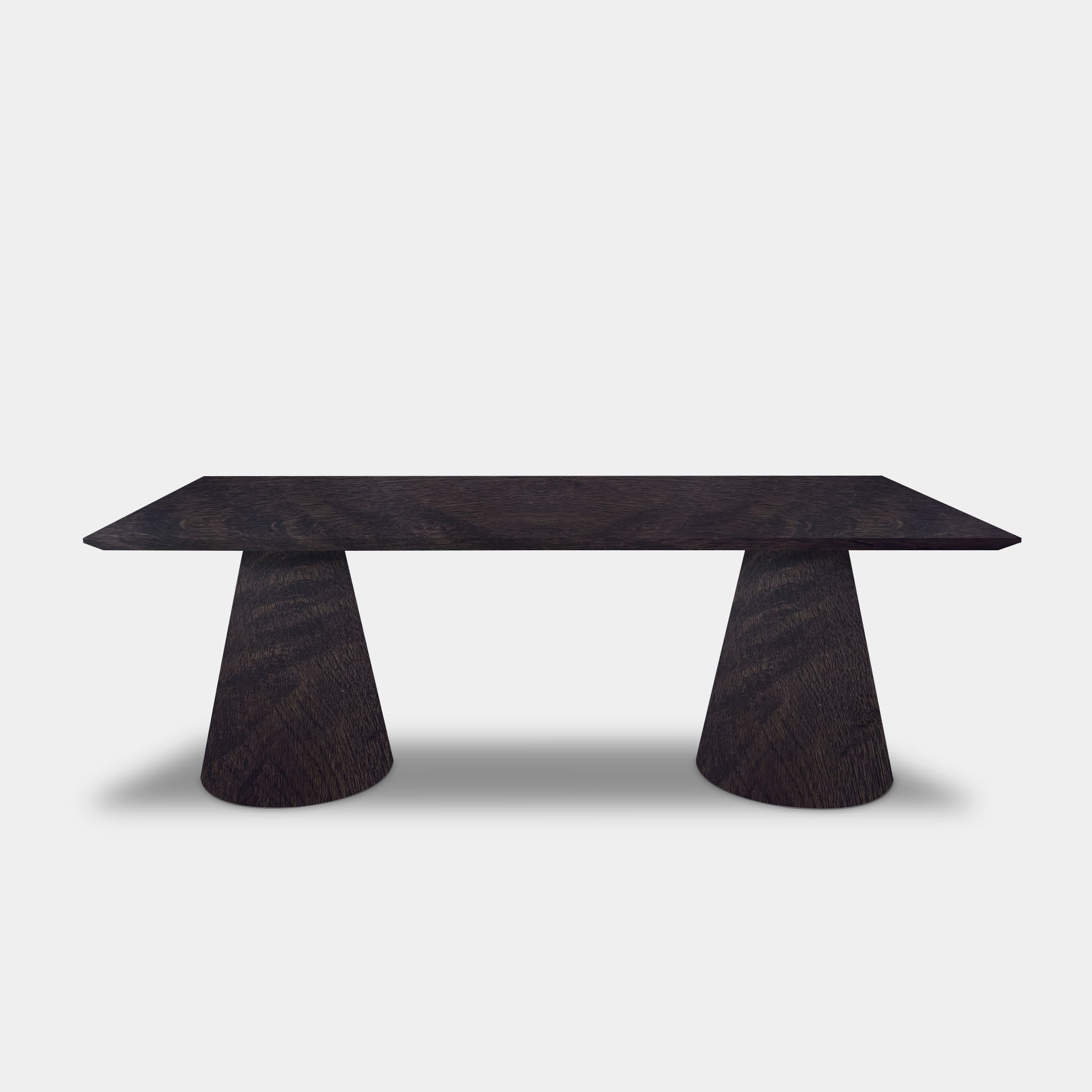 Cette élégante table en chêne aux pieds coniques est entièrement déclinée en gris foncé . Le plateau et le piètement forment un ensemble élégant qui s'intègre aussi bien aux intérieurs modernes que classiques.