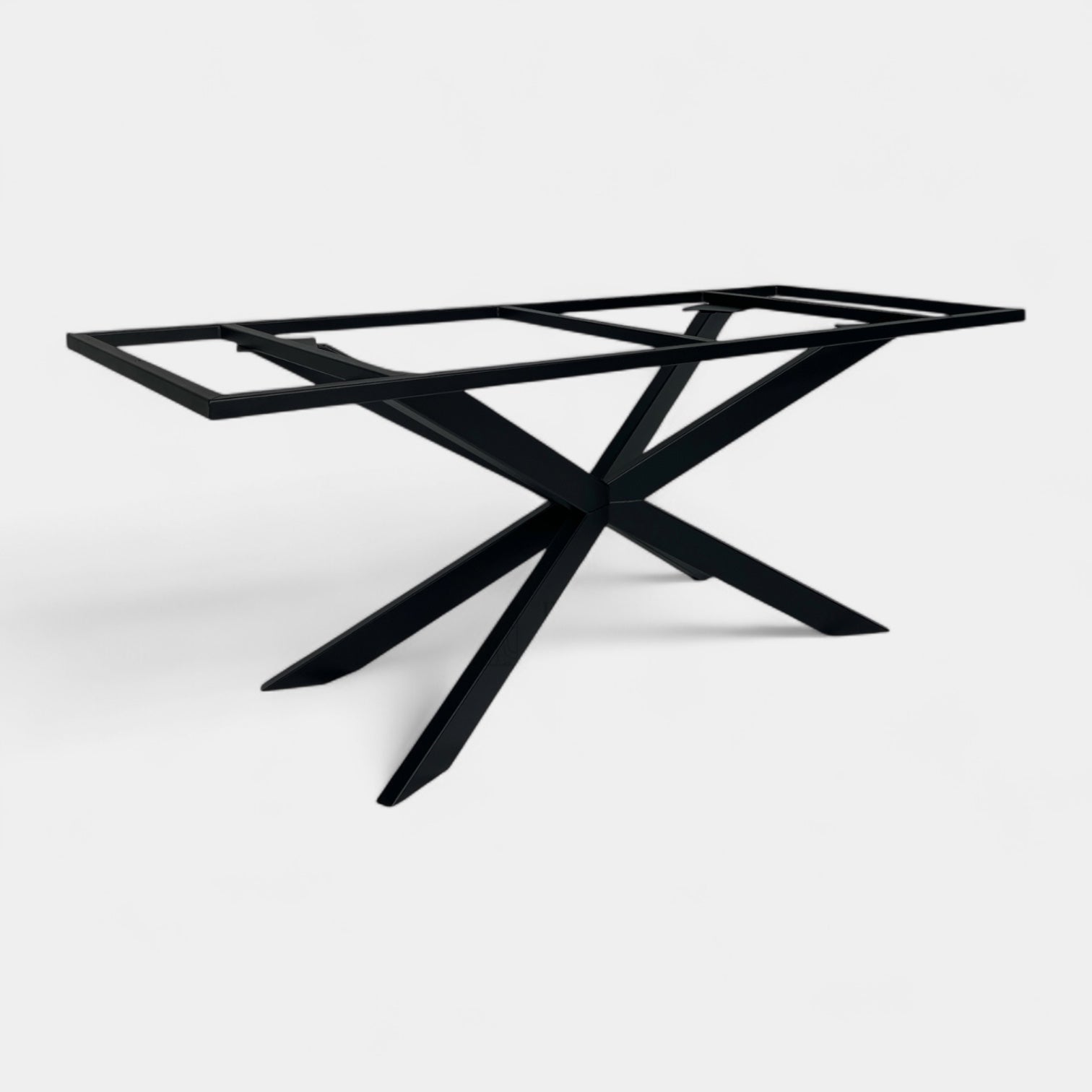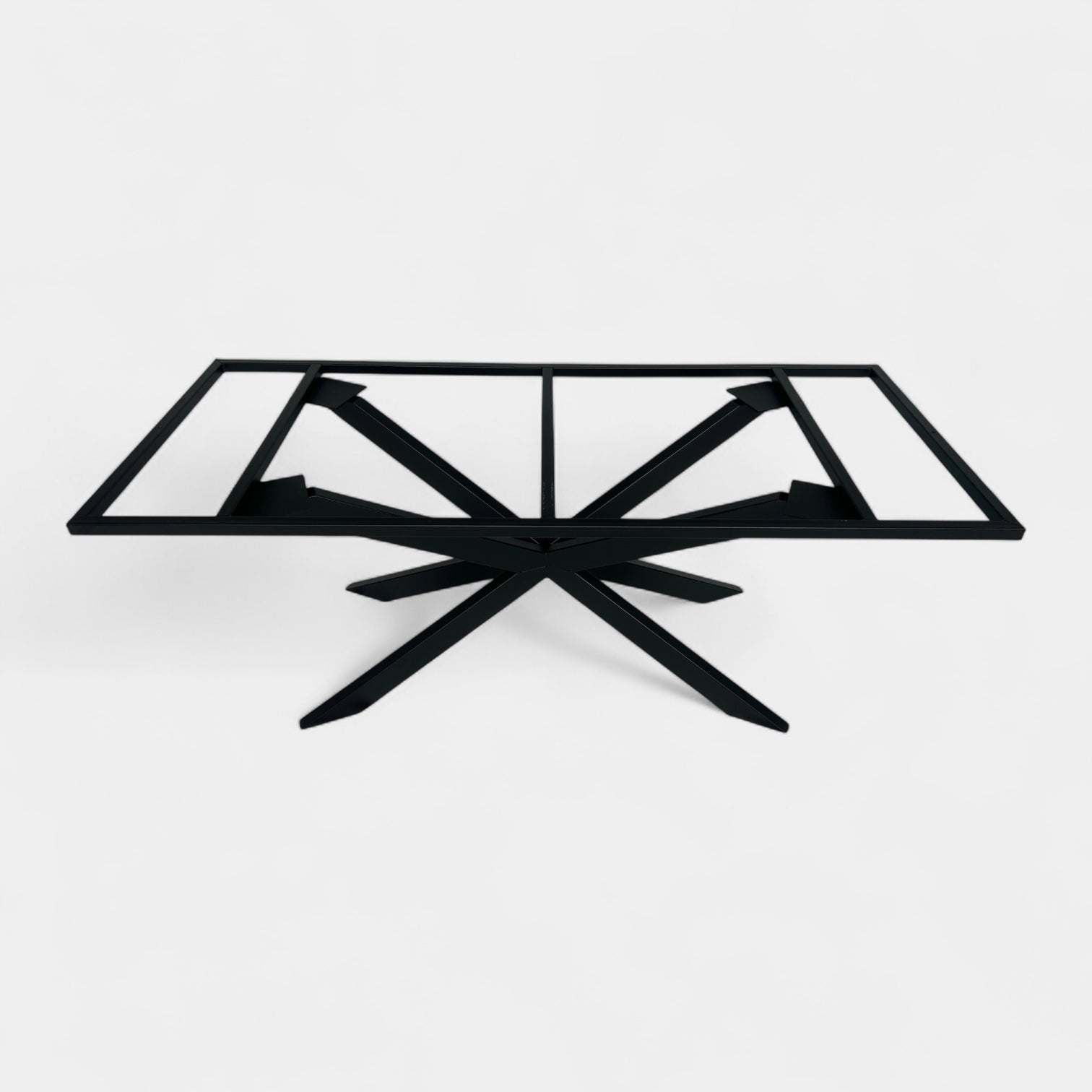 Met zijn uitgespreide poten en strakke lijnen geeft het Spider onderstel je tafel een stoere en moderne uitstraling. Het robuuste ontwerp zorgt voor optimale stabiliteit en past perfect bij zowel ronde als rechthoekige tafelbladen.