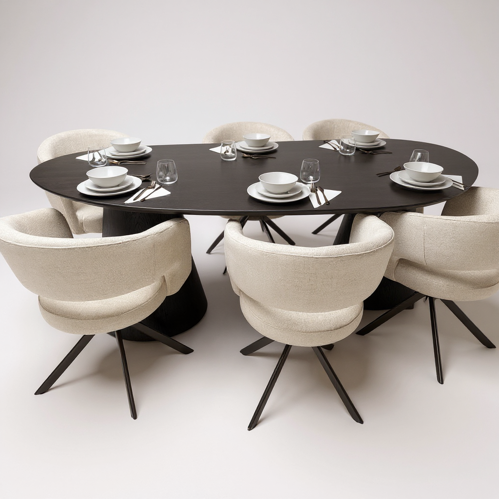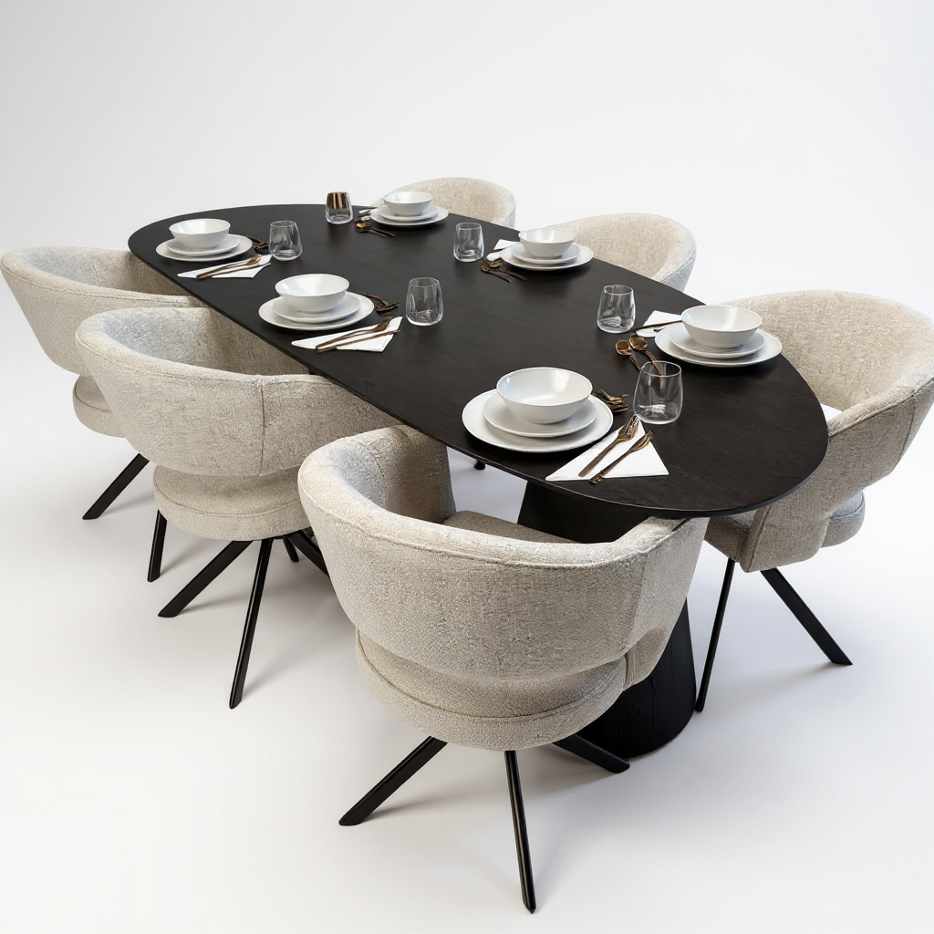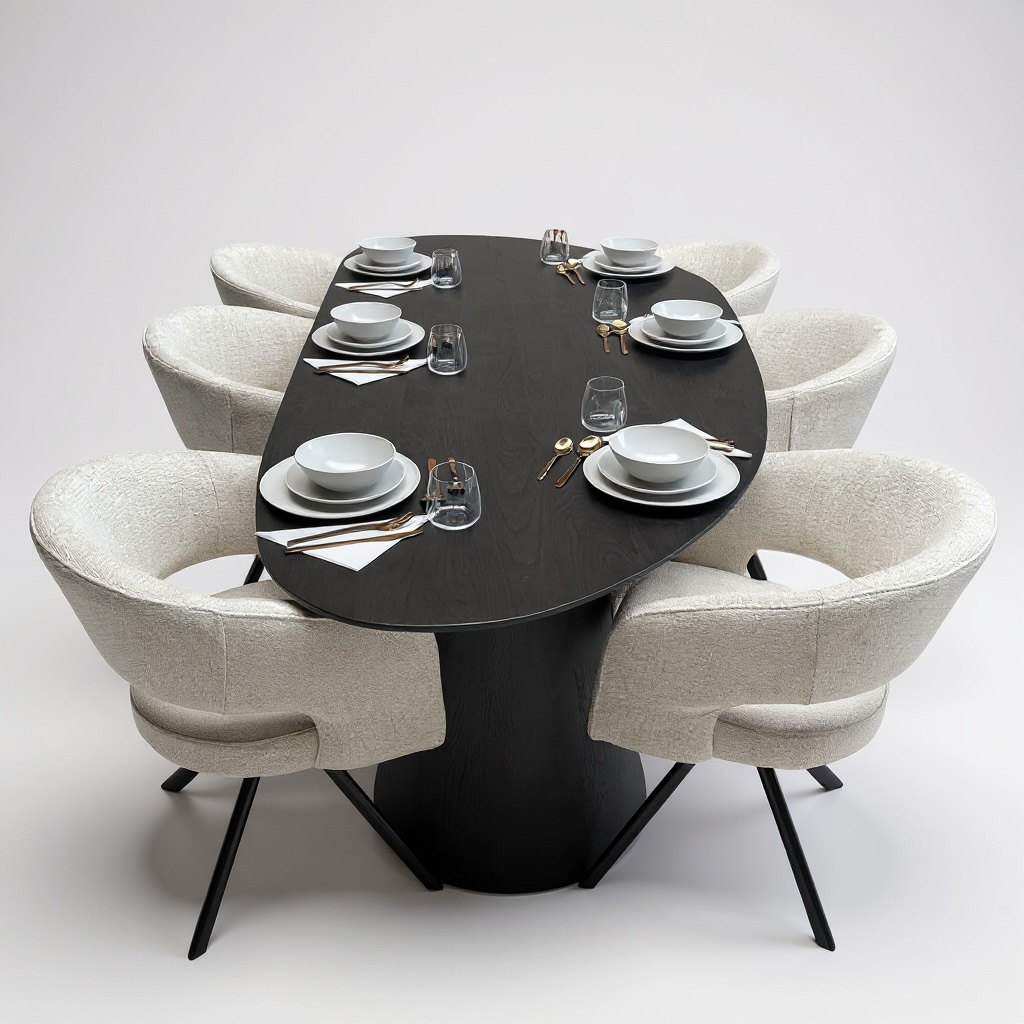 Créez une oasis de calme et de style avec notre table à manger organique. Sa forme unique et douce, sans angles durs, rompt avec l'improvisation et crée une atmosphère chaleureuse. Le gris profond et apaisant du plateau en chêne s'intègre parfaitement à un intérieur moderne et forme une base élégante.