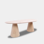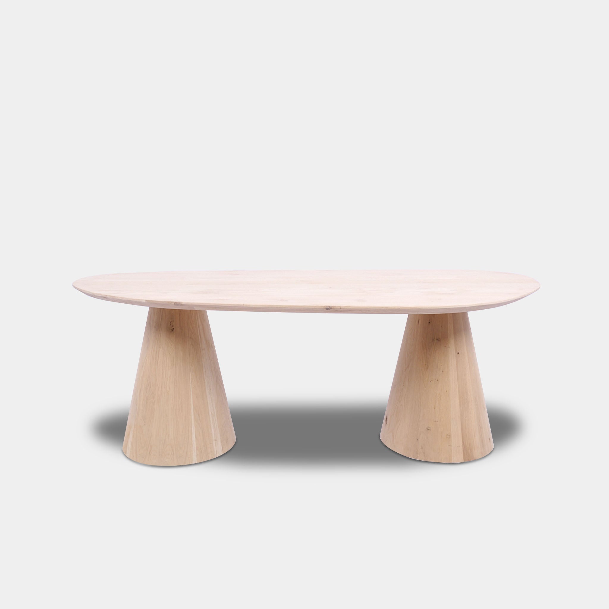 Cette table élégante et ludique aux formes organiques en chêne massif, avec sa finition non traitée, allie savoir-faire artisanal et design raffiné. Son plateau fluide crée un aspect doux et organique, tandis que ses quatre pieds fuselés en chêne massif offrent une base fine et stable.