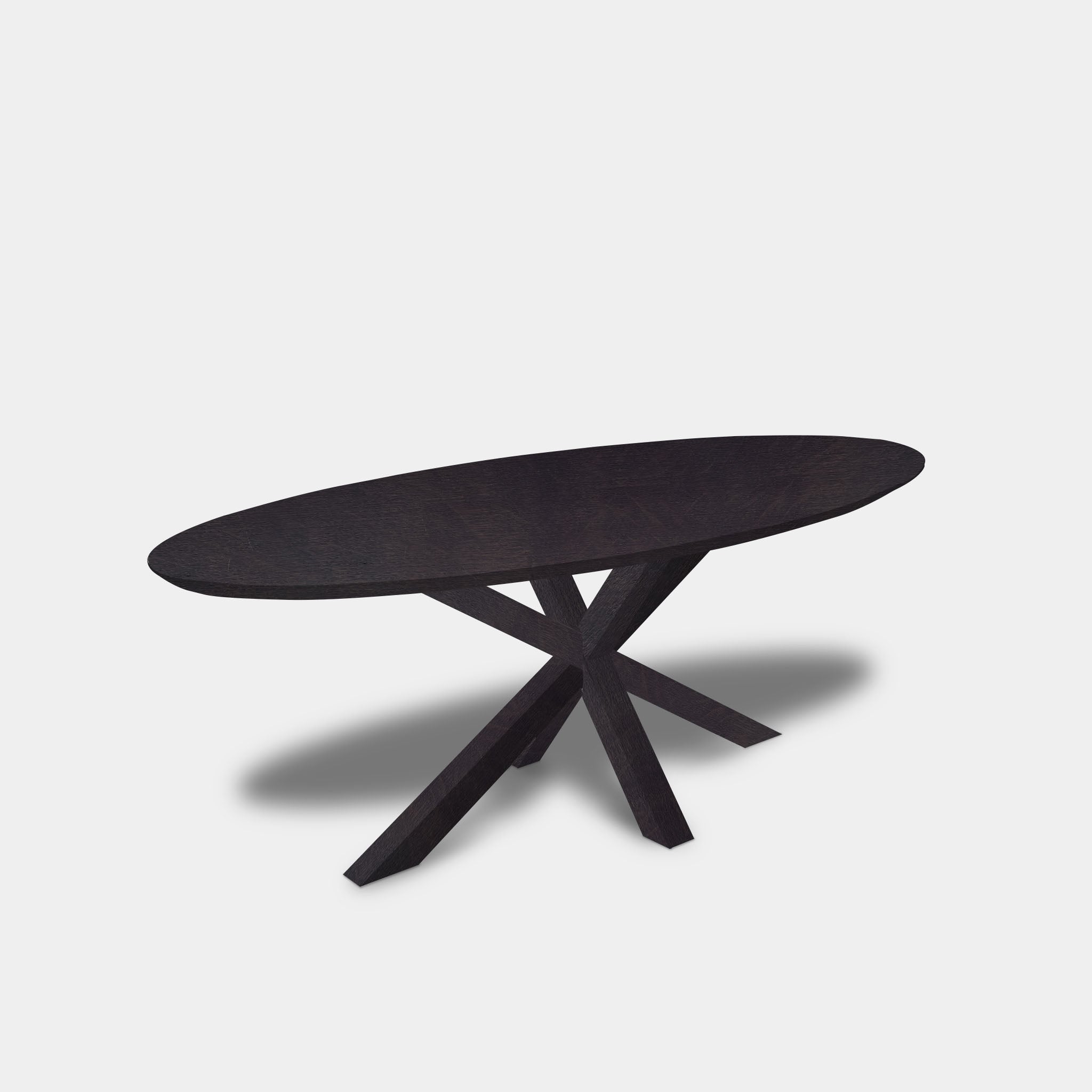 ➡️ Créez votre propre table ovale en chêne couleur Night Glow avec base en matrice de bois