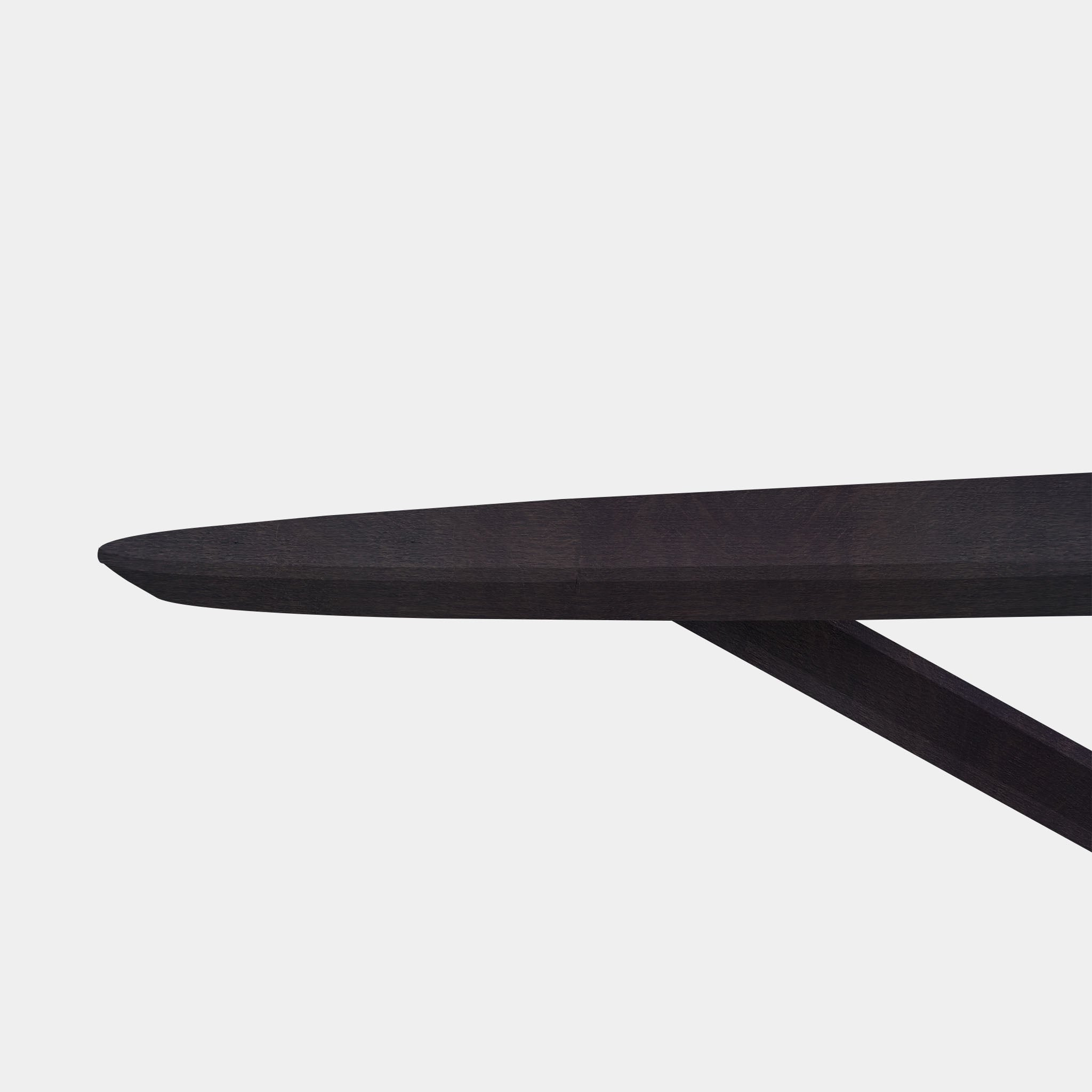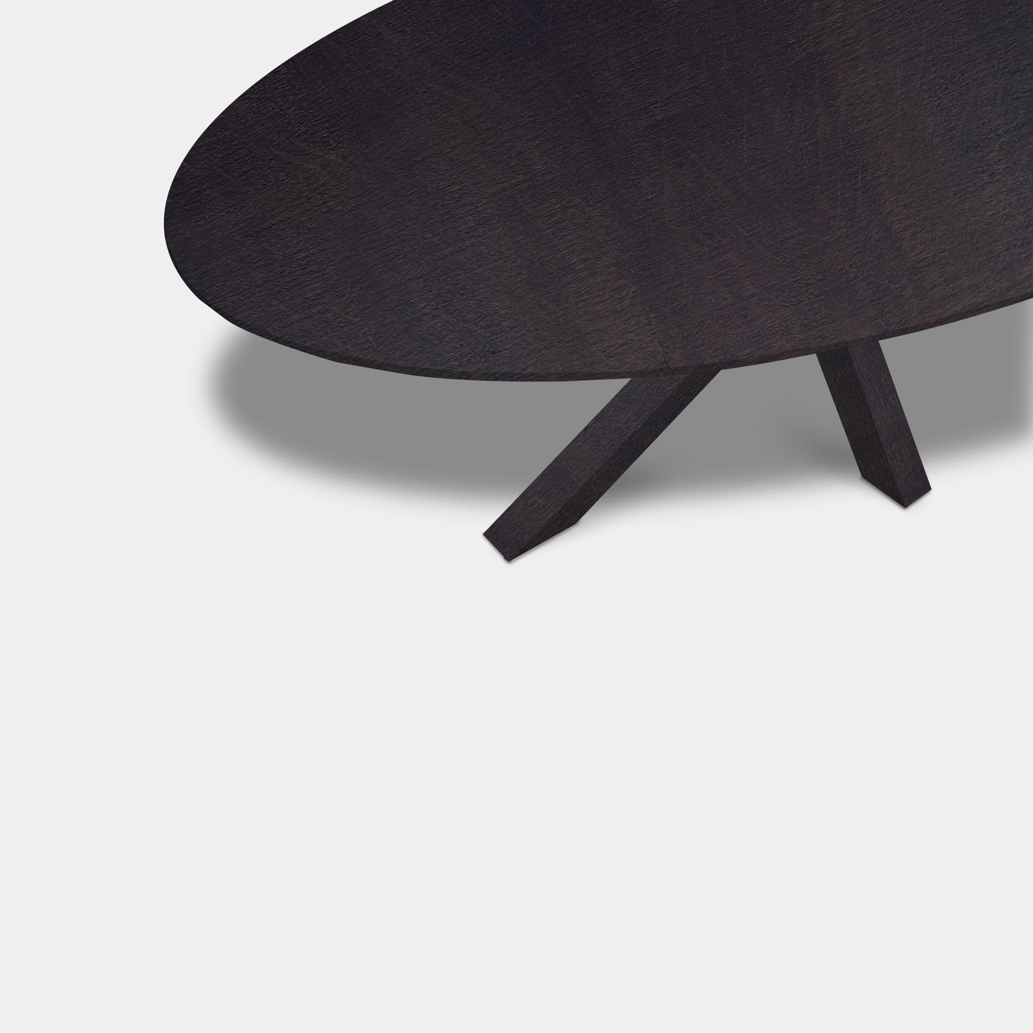 La couleur Night Glow souligne subtilement le grain du bois, faisant de cette table une pièce maîtresse atmosphérique et intemporelle pour n'importe quelle pièce.