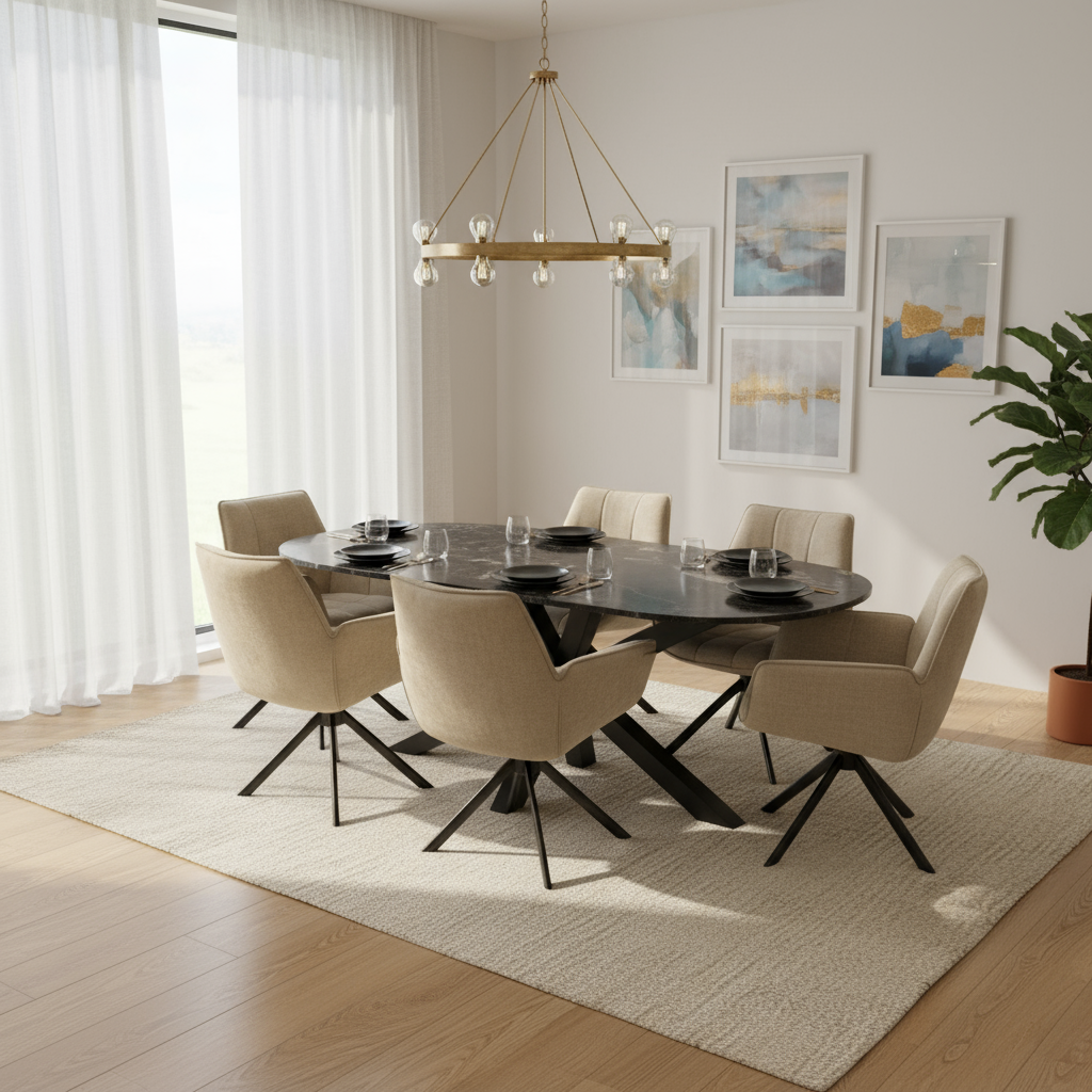 De tafel combineert luxe uitstraling met functionaliteit en past perfect in zowel moderne als klassieke interieurs. Ideaal voor sfeervolle diners en een echte eyecatcher in uw eetkamer.