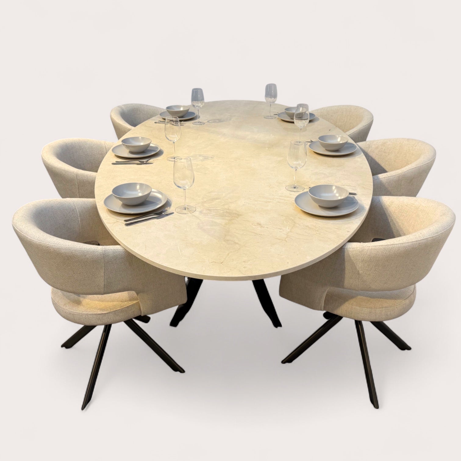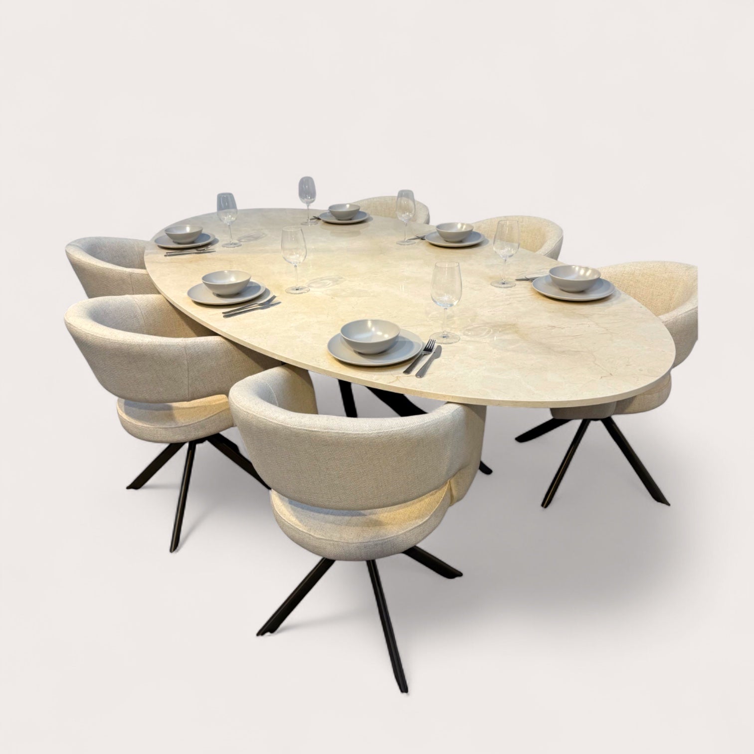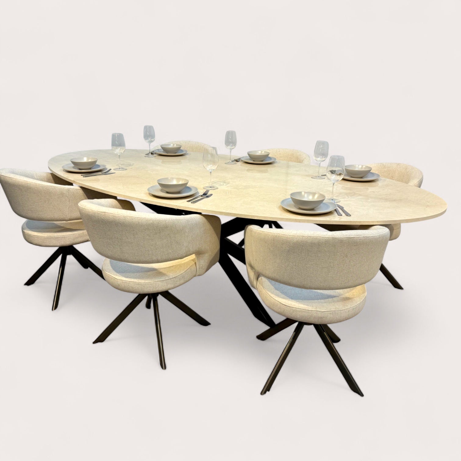 Crema Marfil – Ovale Marmeren Eettafel op Maat