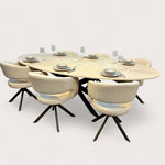 Bij ons bepaalt u zelf de afmetingen, randafwerking, tafelframes en kleuraccenten. Of u nu kiest voor een royale ovale vorm of een compact design – de Crema Marfil eettafel wordt volledig op maat vervaardigd, zodat deze naadloos aansluit bij uw interieur en persoonlijke stijl.