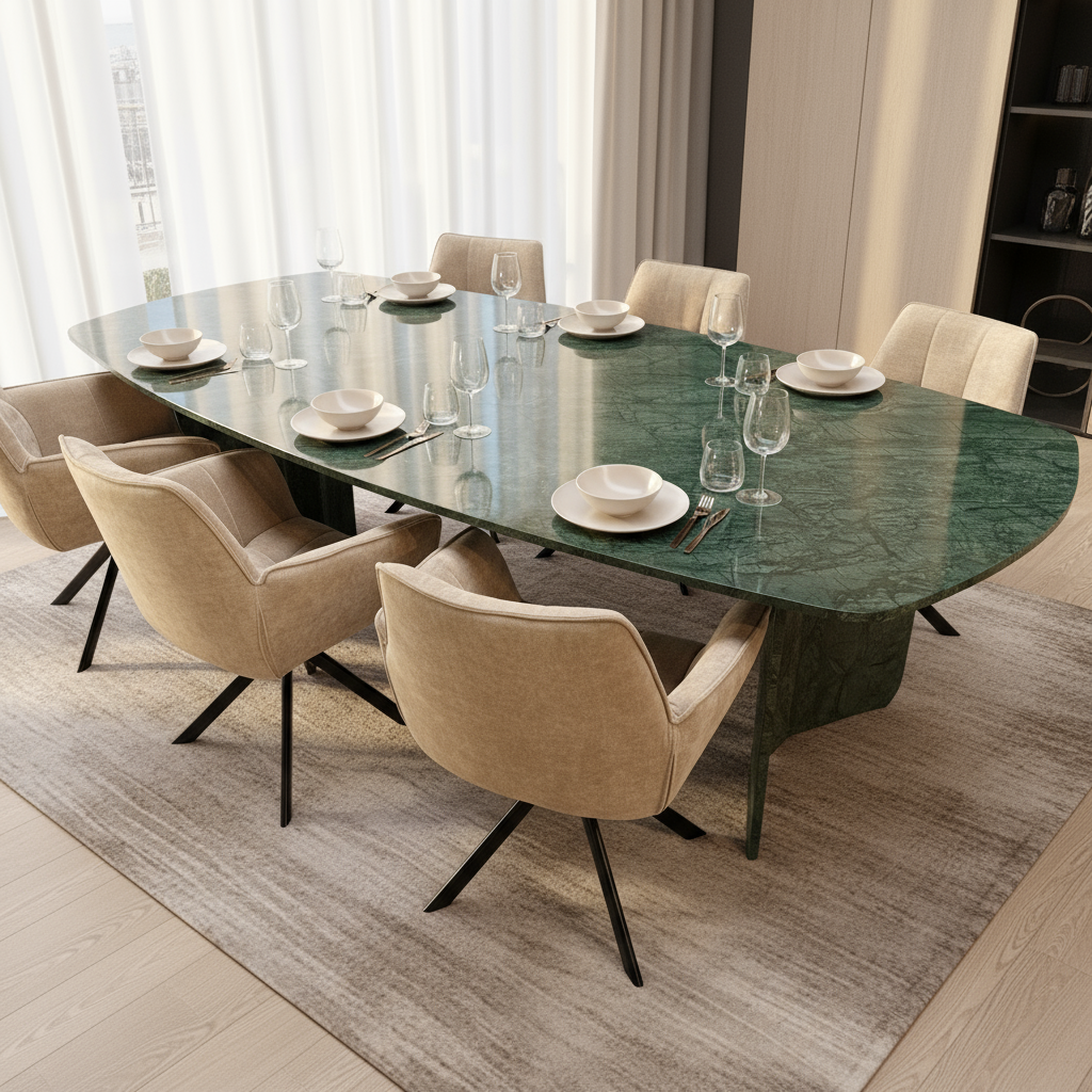 Of u nu zoekt naar een groene marmeren eettafel, een natuurstenen design tafel, of een volledig marmeren tafel op maat – de Green Marble is dé keuze voor wie kwaliteit, stijl en exclusiviteit waardeert.