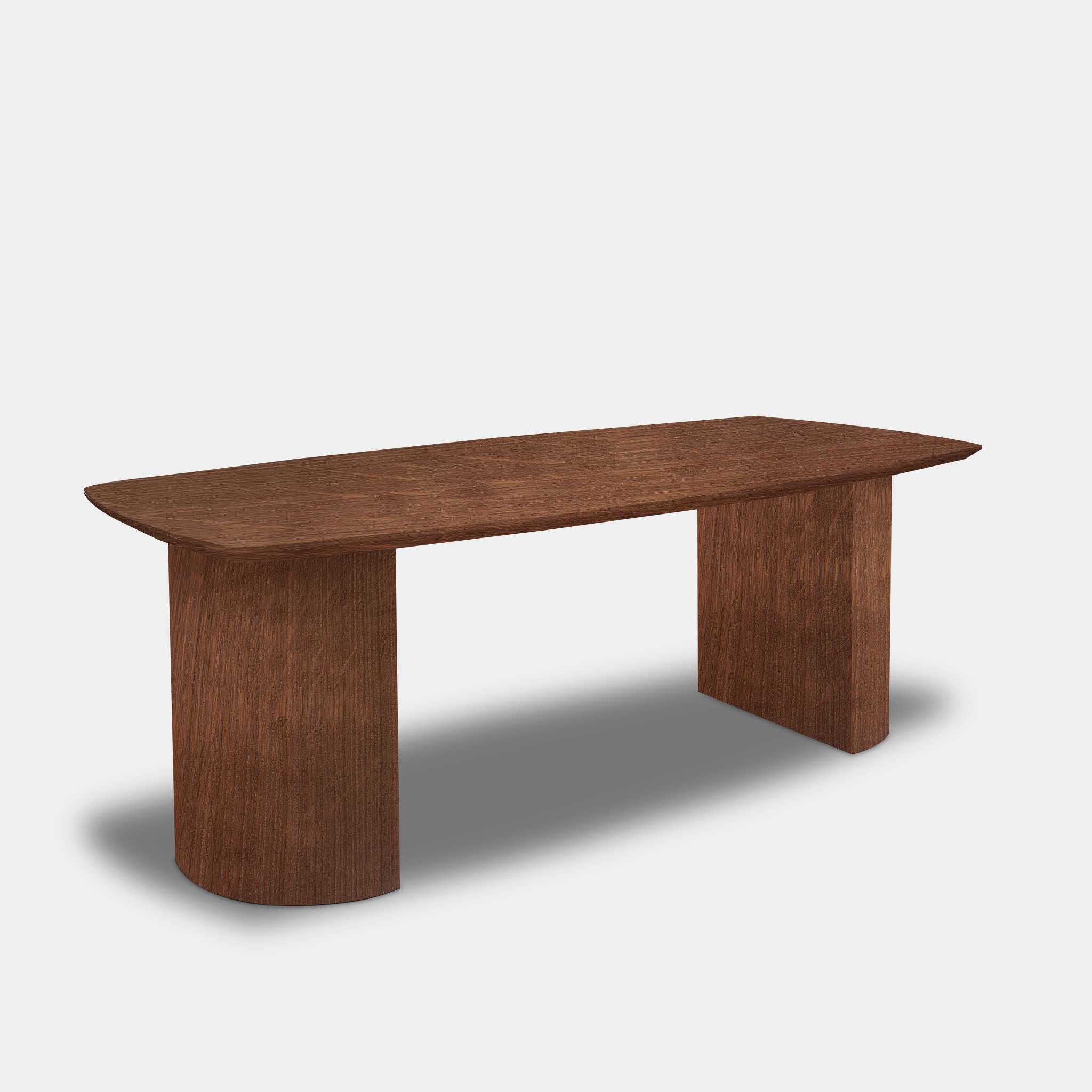 Deze karaktervolle Deens ovale tafel van massief eikenhout, afgewerkt in de warme, mediterrane kleur Toscane 102, brengt zuidelijke flair samen met tijdloos vakmanschap. Het afgeronde blad geeft de tafel een zachte en luchtige vorm, terwijl het bijpassende half ronde onderstel, meegespoten in dezelfde tint, zorgt voor een stevige en elegante basis.