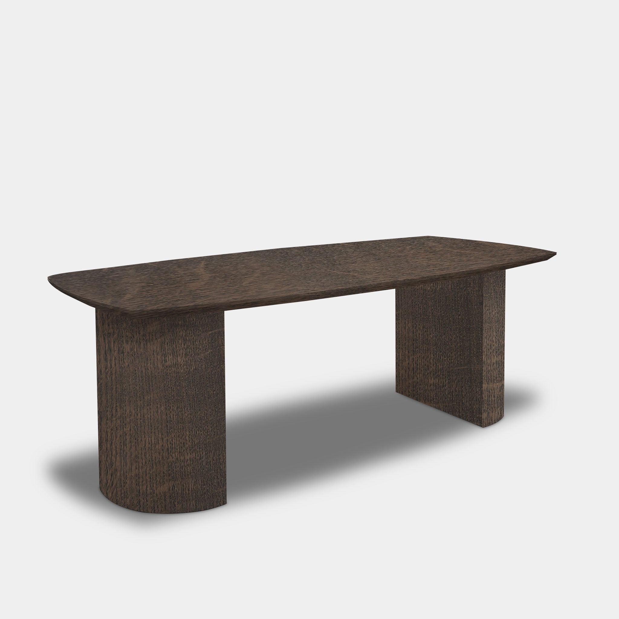 De kleur Zand benadrukt de houtstructuur op subtiele wijze en geeft deze tafel een frisse, natuurlijke uitstraling. Perfect voor interieurs waarin licht, eenvoud en vakmanschap centraal staan.