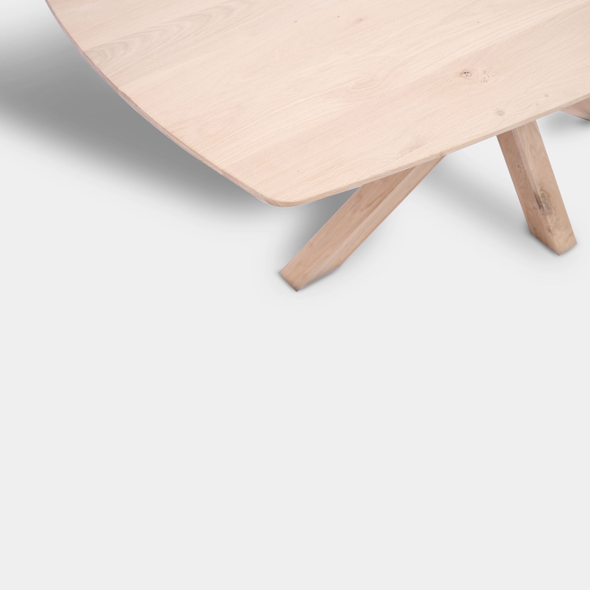 ➡️ Stel jouw Deens ovale eikenhouten tafel samen met houten matrix onderstel – onbehandeld