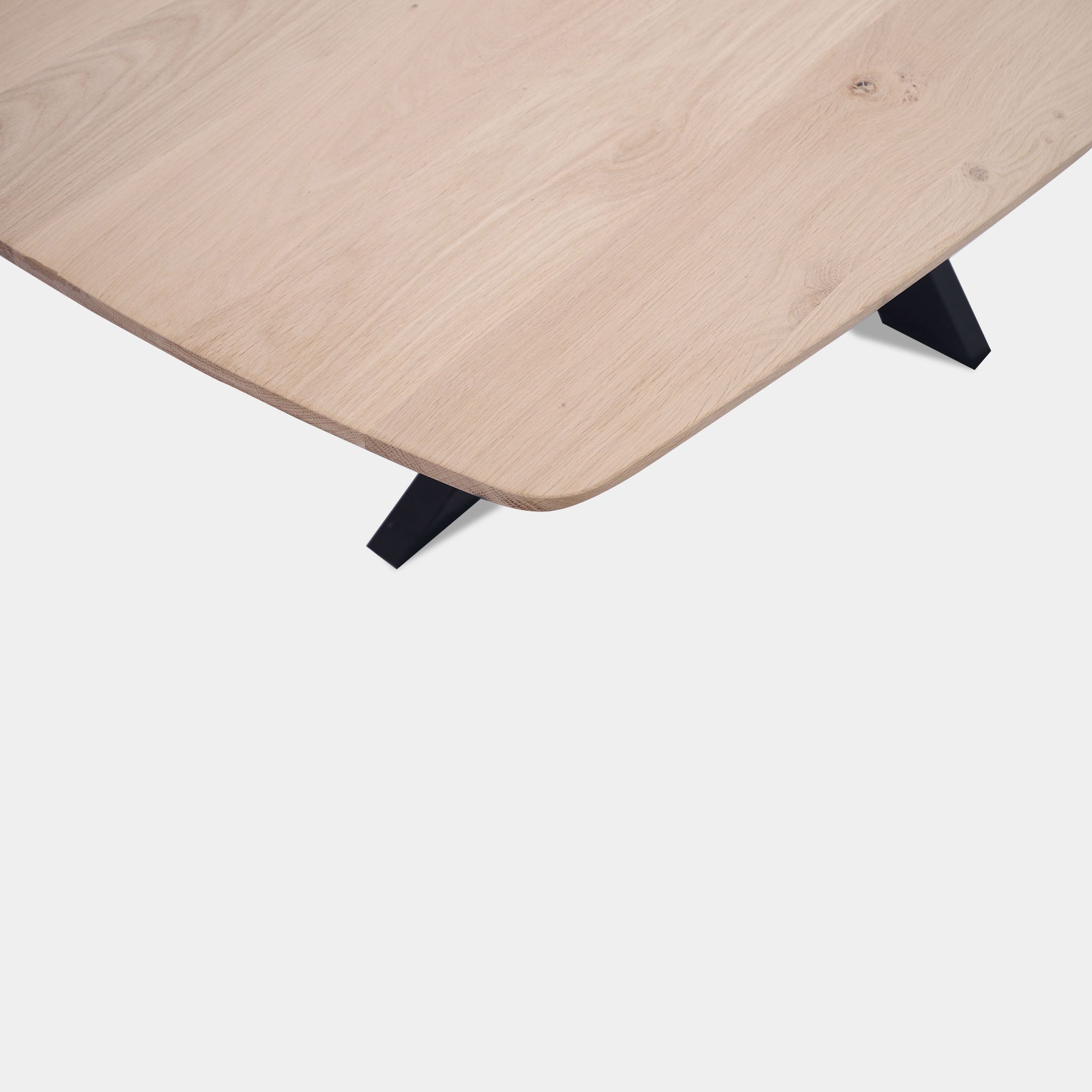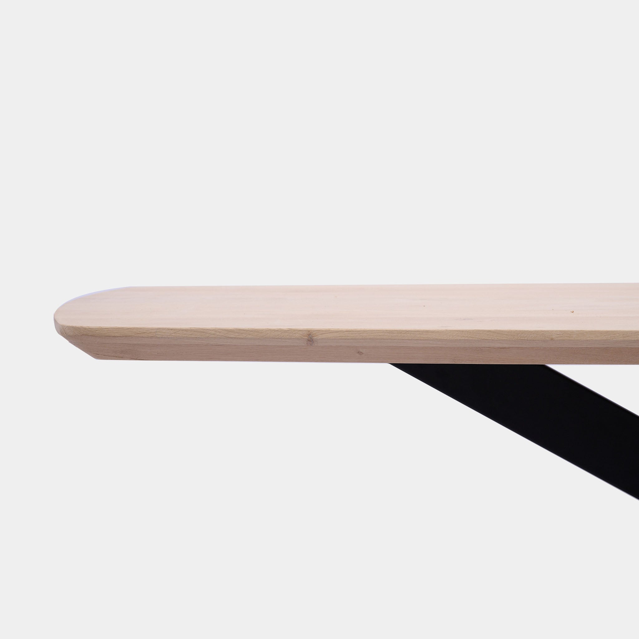 De combinatie van het verfijnde blad en het stoere onderstel maakt deze tafel een perfecte balans tussen zachtheid en kracht. De onbehandelde afwerking biedt maximale vrijheid in stijl en afwerking.