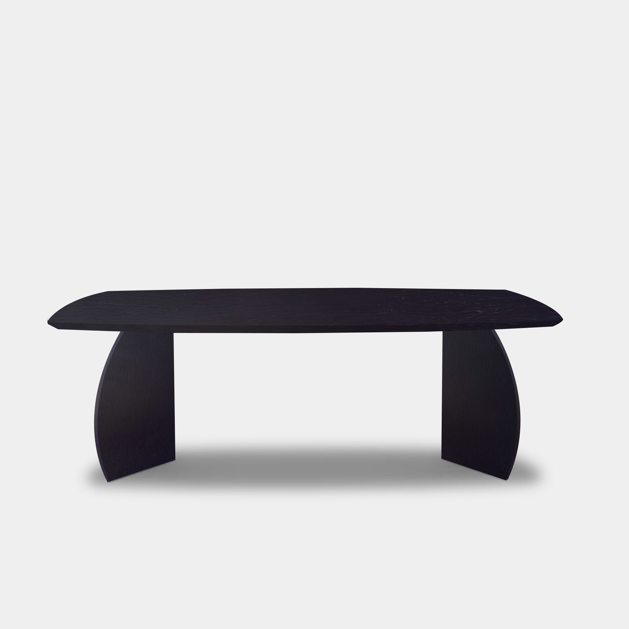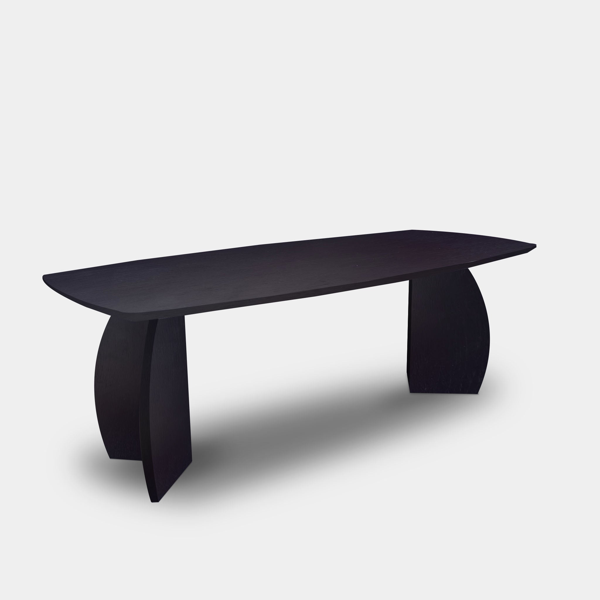 Deze indrukwekkende Deens ovale tafel van massief eikenhout, afgewerkt in de diepe, klassieke kleur Donker Eiken, ademt tijdloze klasse en natuurlijke kracht. Het afgeronde blad zorgt voor een zachte, uitnodigende vorm, terwijl het bijpassende driehoek onderstel, meegespoten in dezelfde rijke tint, een stabiele en elegante basis vormt.