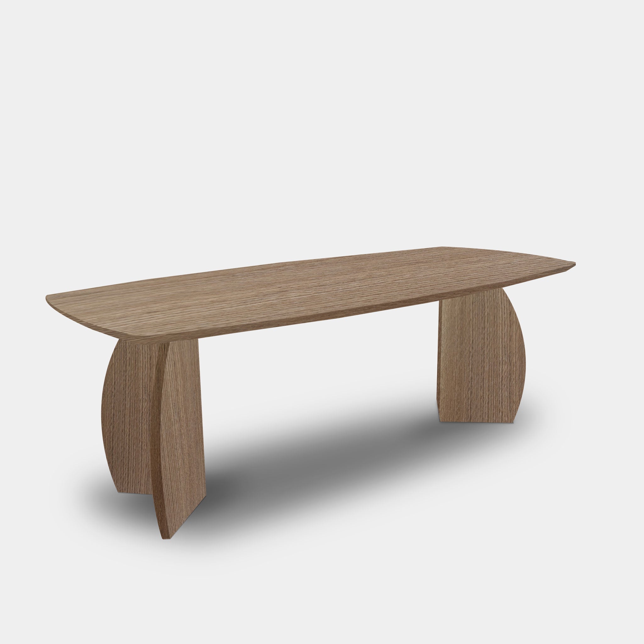 Deze stijlvolle Deens ovale tafel van massief eikenhout, afgewerkt in de frisse, lichte kleur Pura Natura, ademt natuurlijke elegantie en Scandinavische rust. Het afgeronde blad zorgt voor een zachte, open vorm, terwijl het moderne driehoek onderstel, meegespoten in dezelfde tint, een eigentijdse en stabiele basis vormt.
