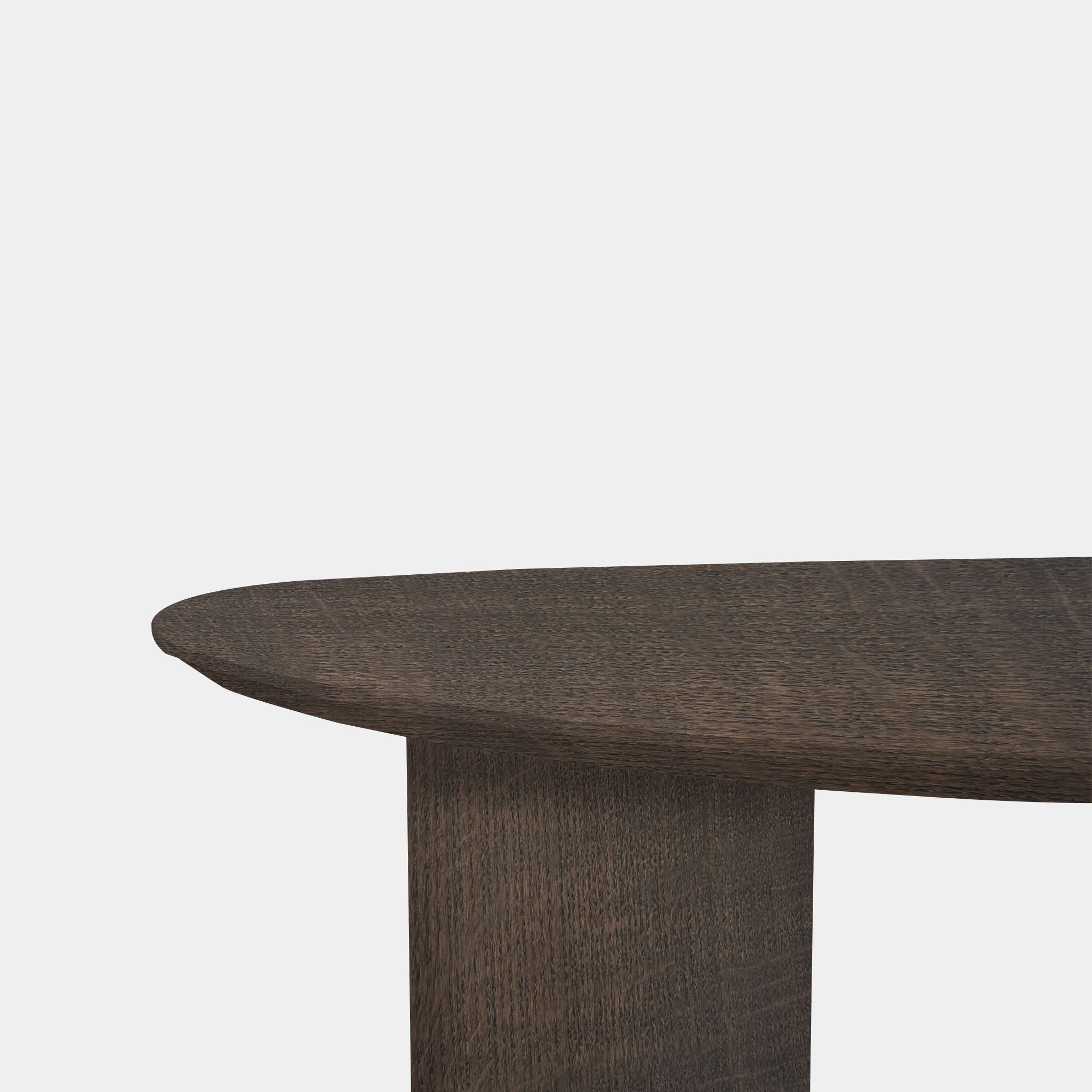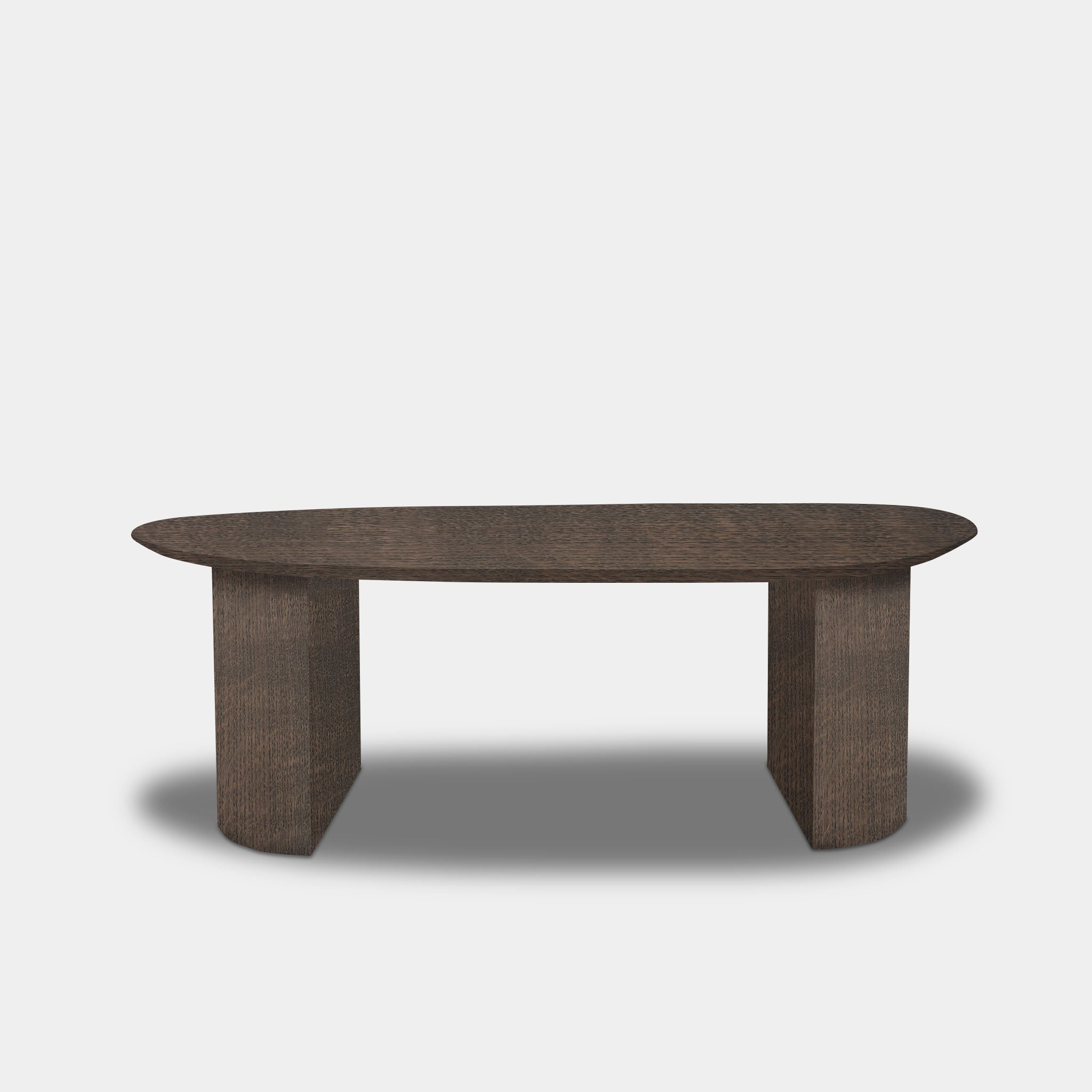 Deze elegante organisch gevormde tafel van massief eikenhout, afgewerkt in de natuurlijke, lichte kleur Zand, straalt rust, verfijning en ambachtelijke klasse uit. Het zacht golvende blad zorgt voor een vriendelijke en vloeiende vormgeving, terwijl het half ronde onderstel, meegespoten in dezelfde tint, zorgt voor een stevige én esthetisch uitgebalanceerde basis.