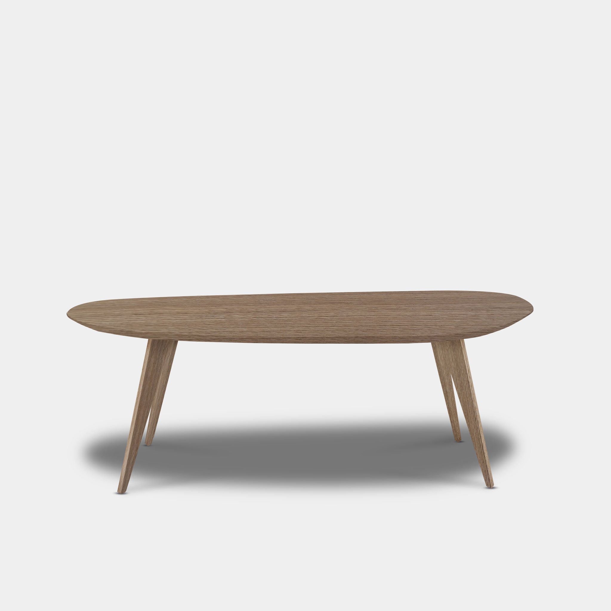Deze verfijnde organisch gevormde tafel van massief eikenhout, afgewerkt in de lichte en natuurlijke kleur Pura Natura, straalt rust, eenvoud en Scandinavisch vakmanschap uit. Het asymmetrisch gevormde blad zorgt voor een zacht, organisch profiel, terwijl het volledig houten onderstel, meegespoten in dezelfde kleur, een rustige en uitgebalanceerde basis vormt.