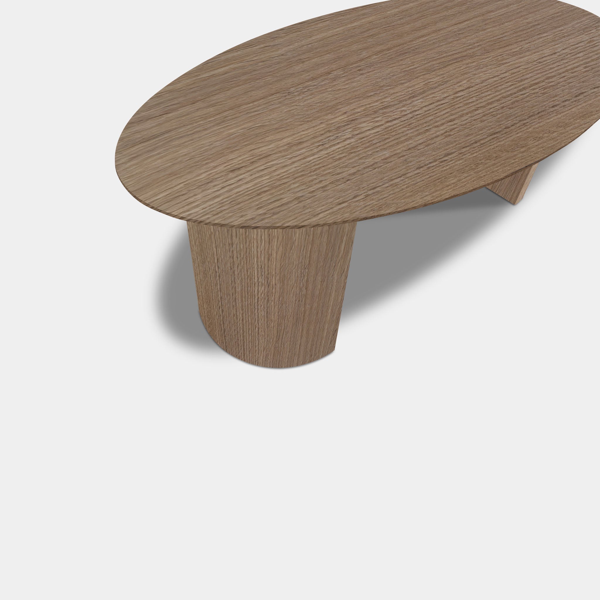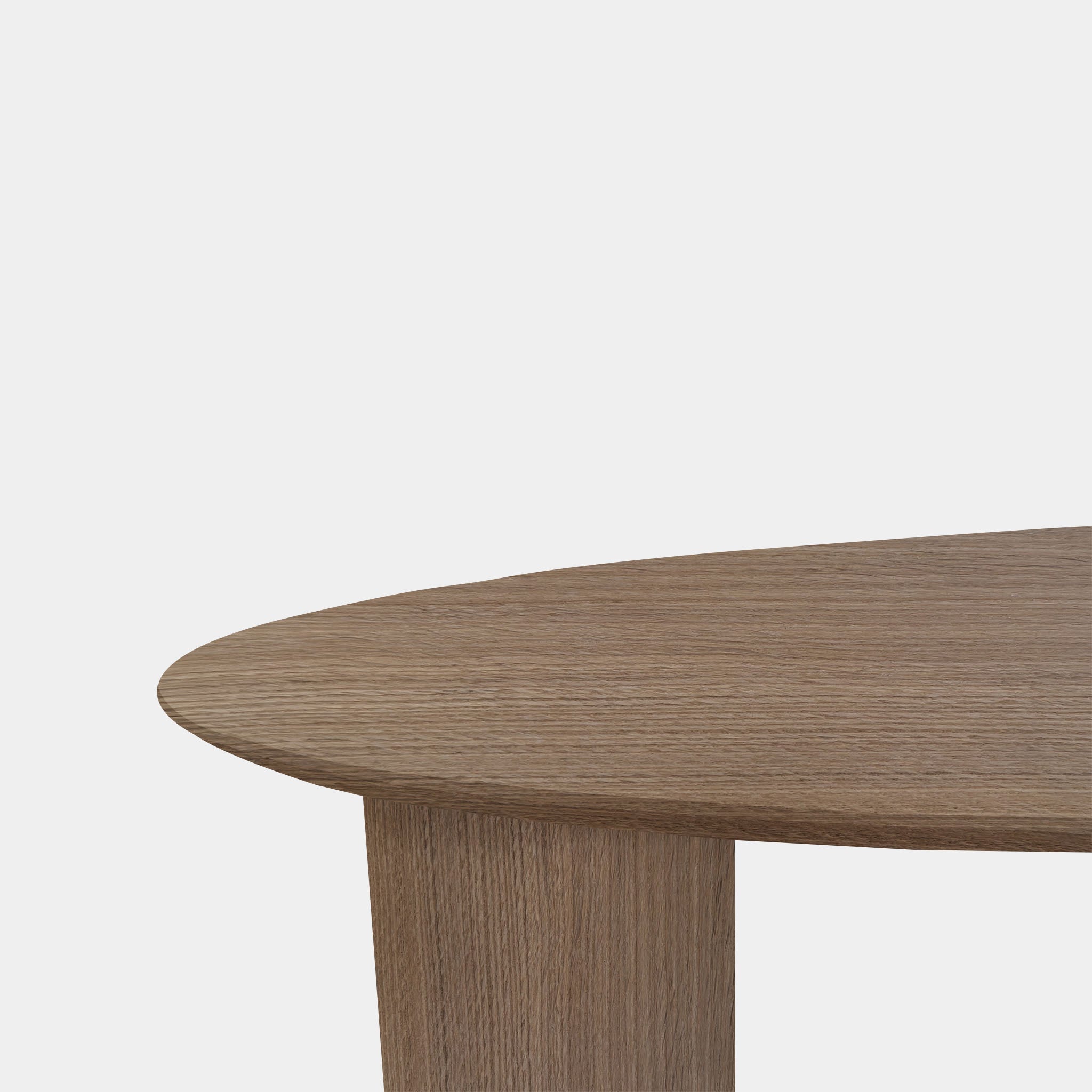 Deze elegante ovale tafel van massief eikenhout, afgewerkt in de lichte, natuurlijke kleur Pura Natura, straalt Scandinavische eenvoud en ambachtelijke finesse uit. De afgeronde, vloeiende vorm zorgt voor een zacht en harmonieus profiel, terwijl het robuuste half ronde onderstel, meegespoten in dezelfde tint, zorgt voor stabiliteit en een stijlvol geheel.