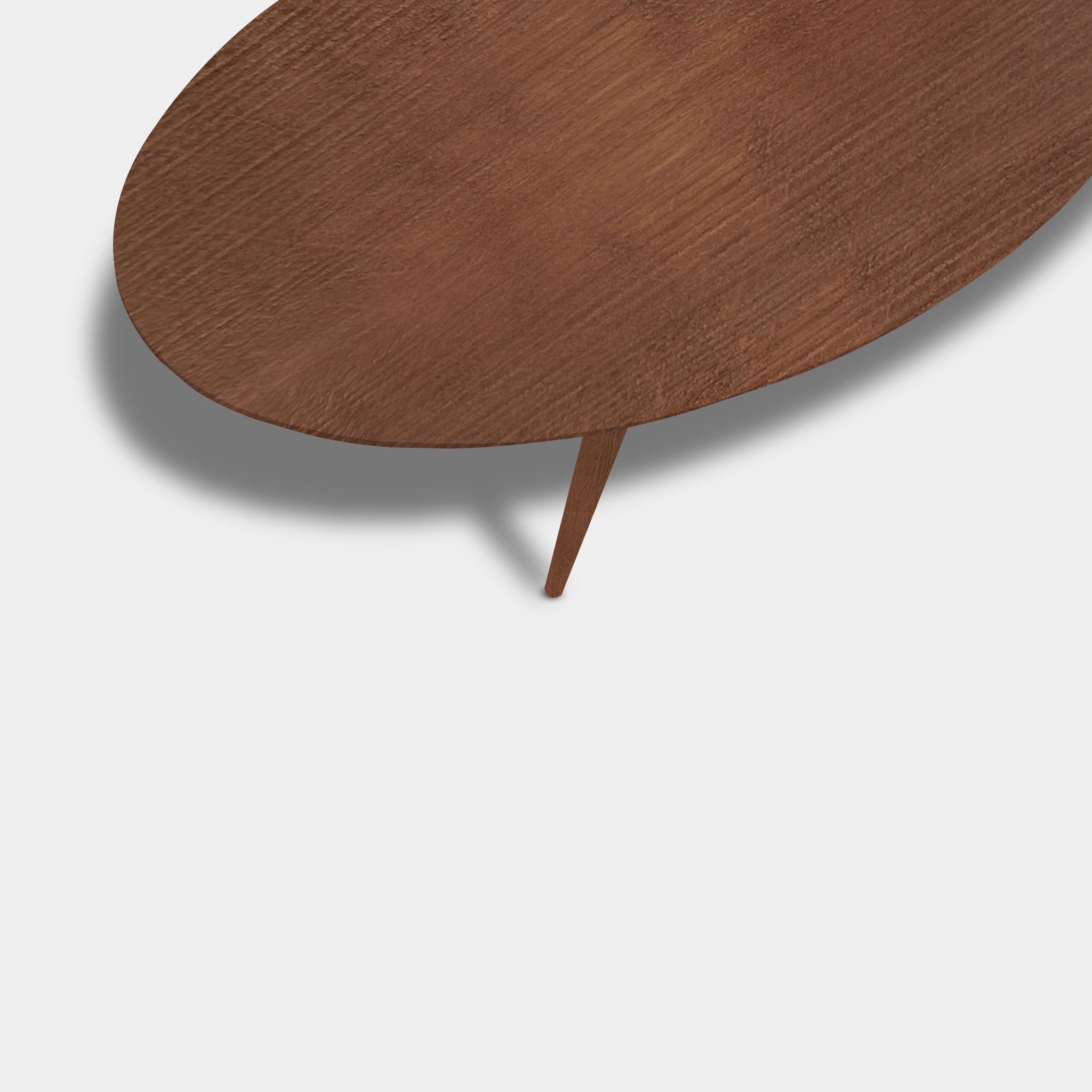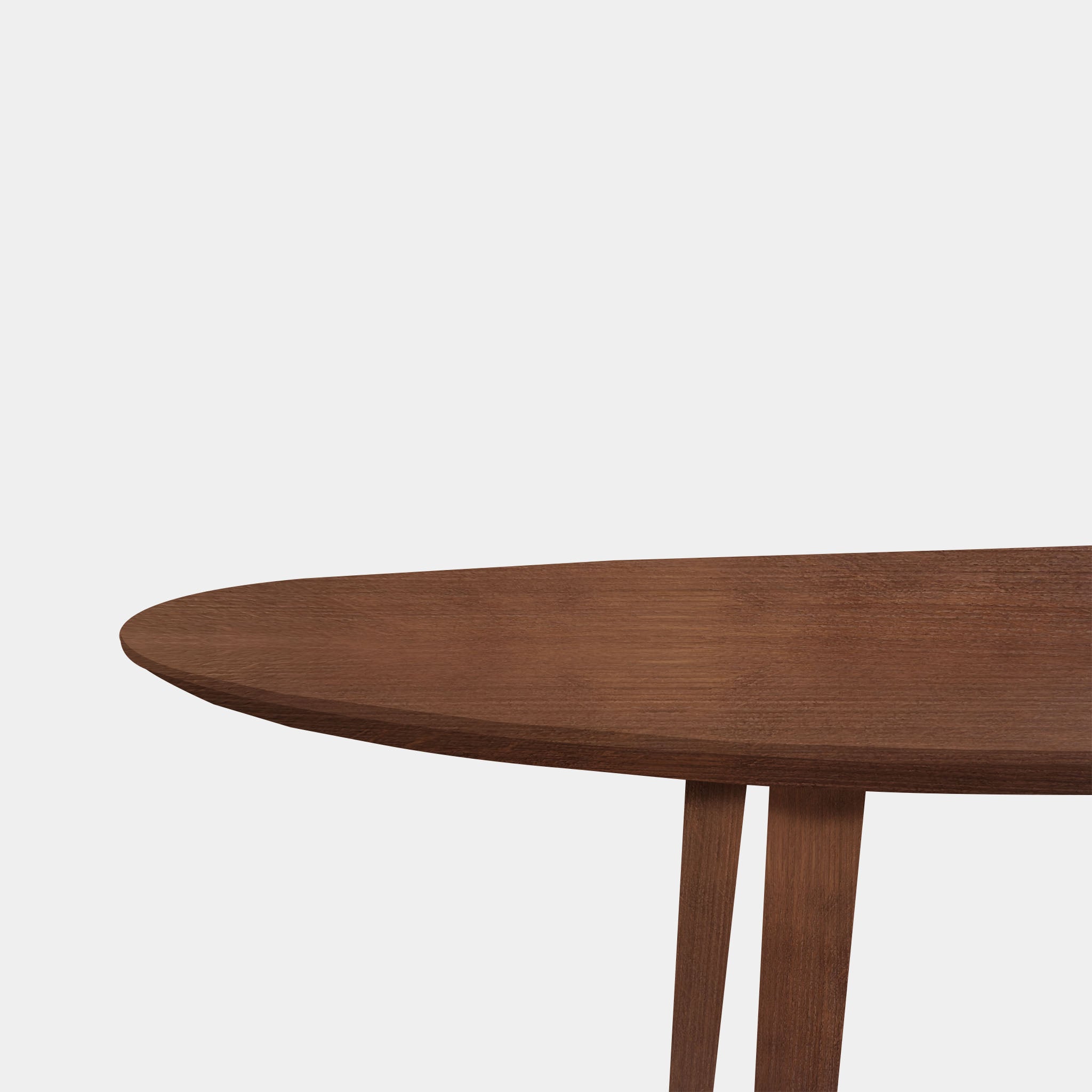 ✔ Gemaakt van massief eikenhout – blad en onderstel in een diepe, warme houtkleur