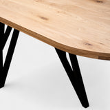 Breng een vleugje natuurlijke elegantie in je eetkamer met deze prachtige plat ovale eettafel. De zachte, vloeiende vorm creëert een open en lichte sfeer, terwijl de 'Pura Natura' afwerking de pure, onbehandelde schoonheid van het eikenhout laat spreken. Het hout behoudt zijn frisse, lichte kleur, maar is toch perfect beschermd voor dagelijks gebruik.