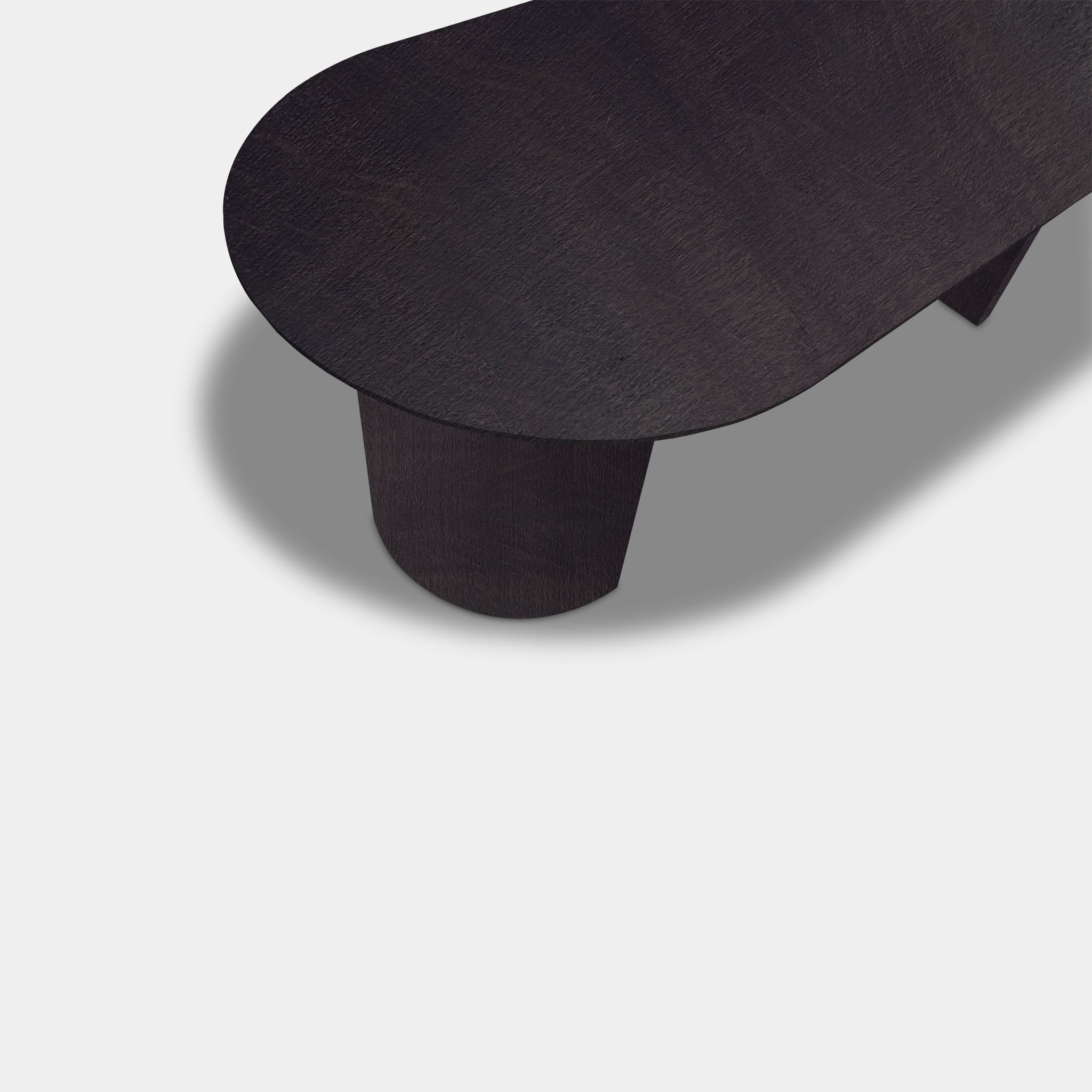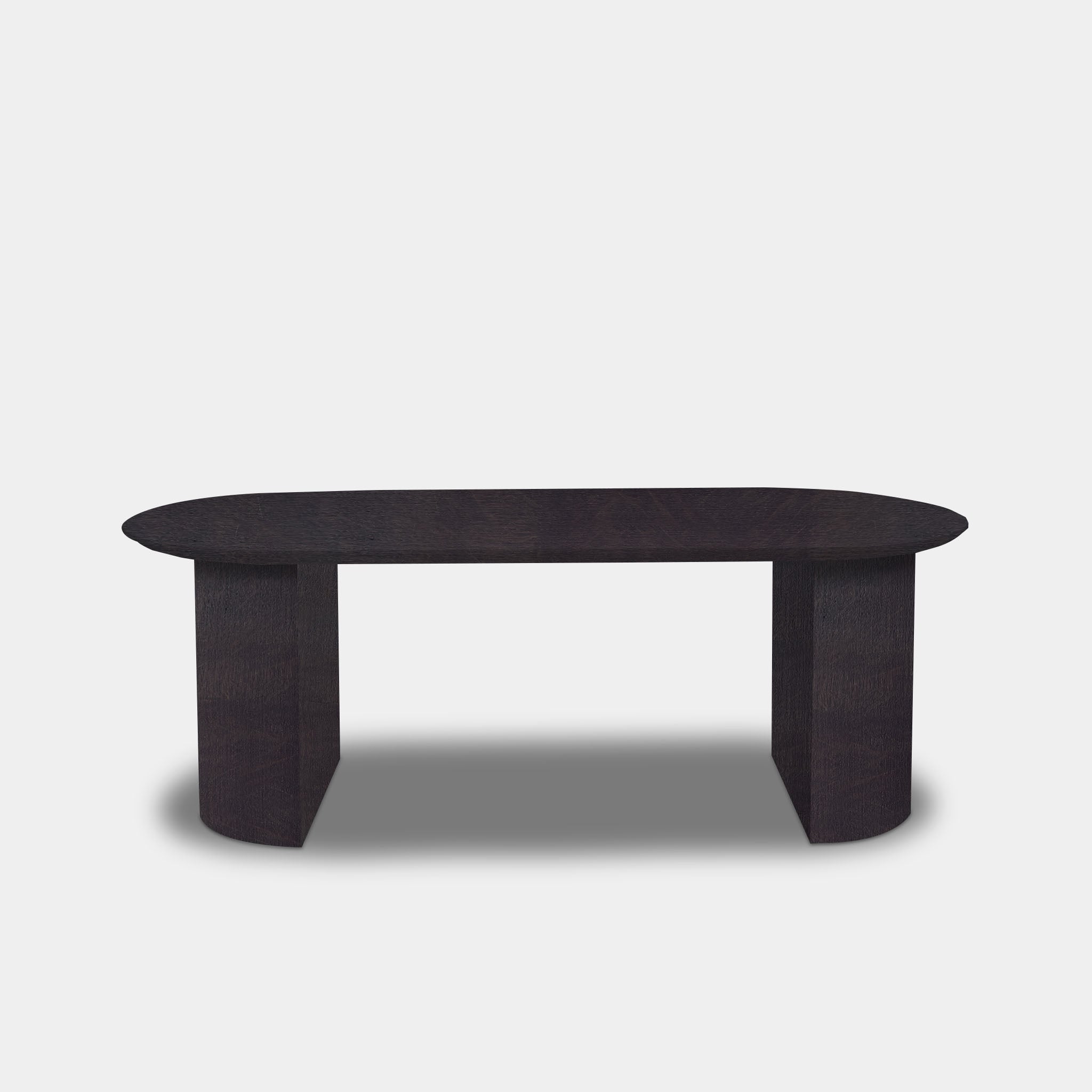 Plat Ovale Eikenhouten Tafel – Kleur: Night Glow met Half Rond Onderstel