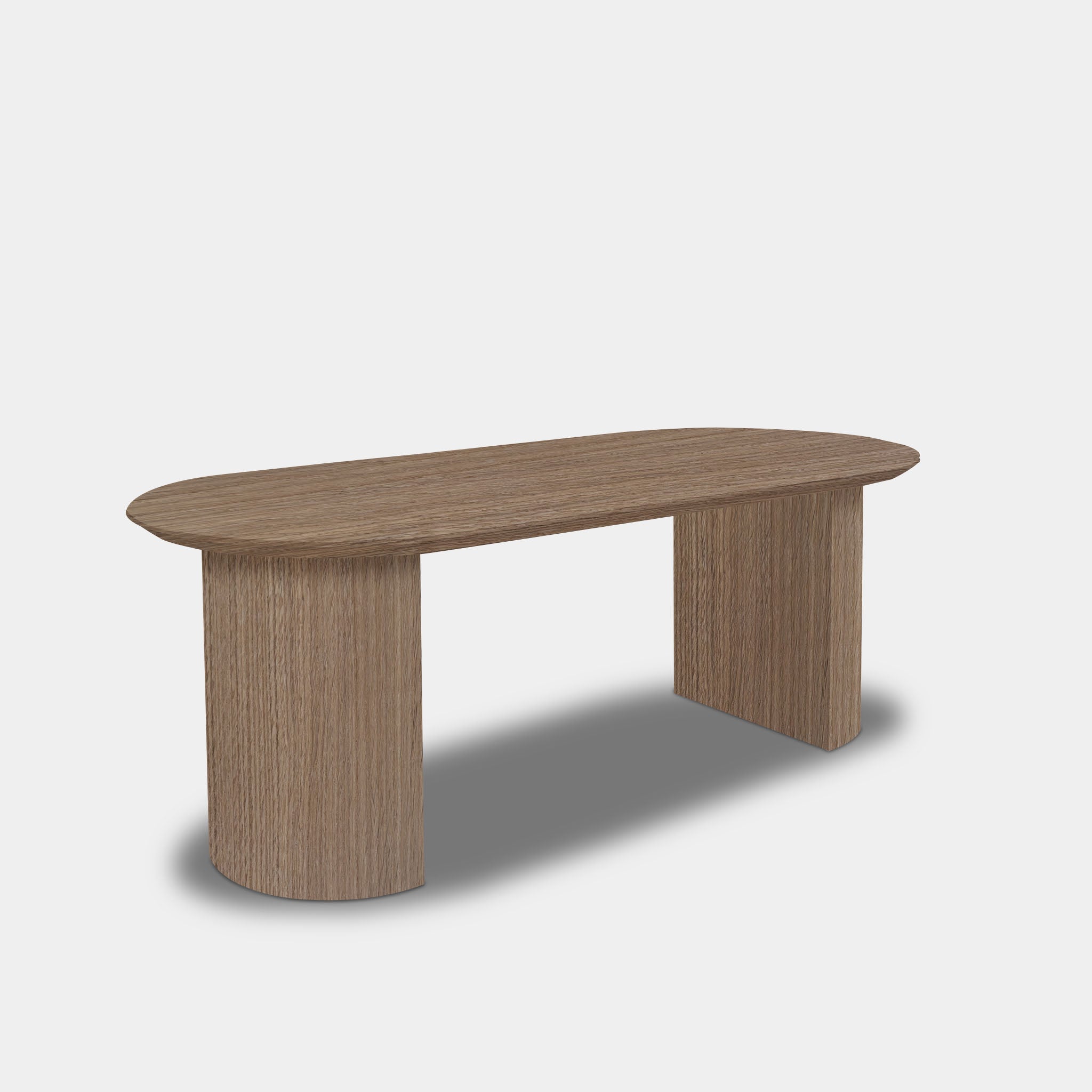 Plat Ovale Eikenhouten Tafel – Kleur: Pura Natura met Half Rond Onderstel