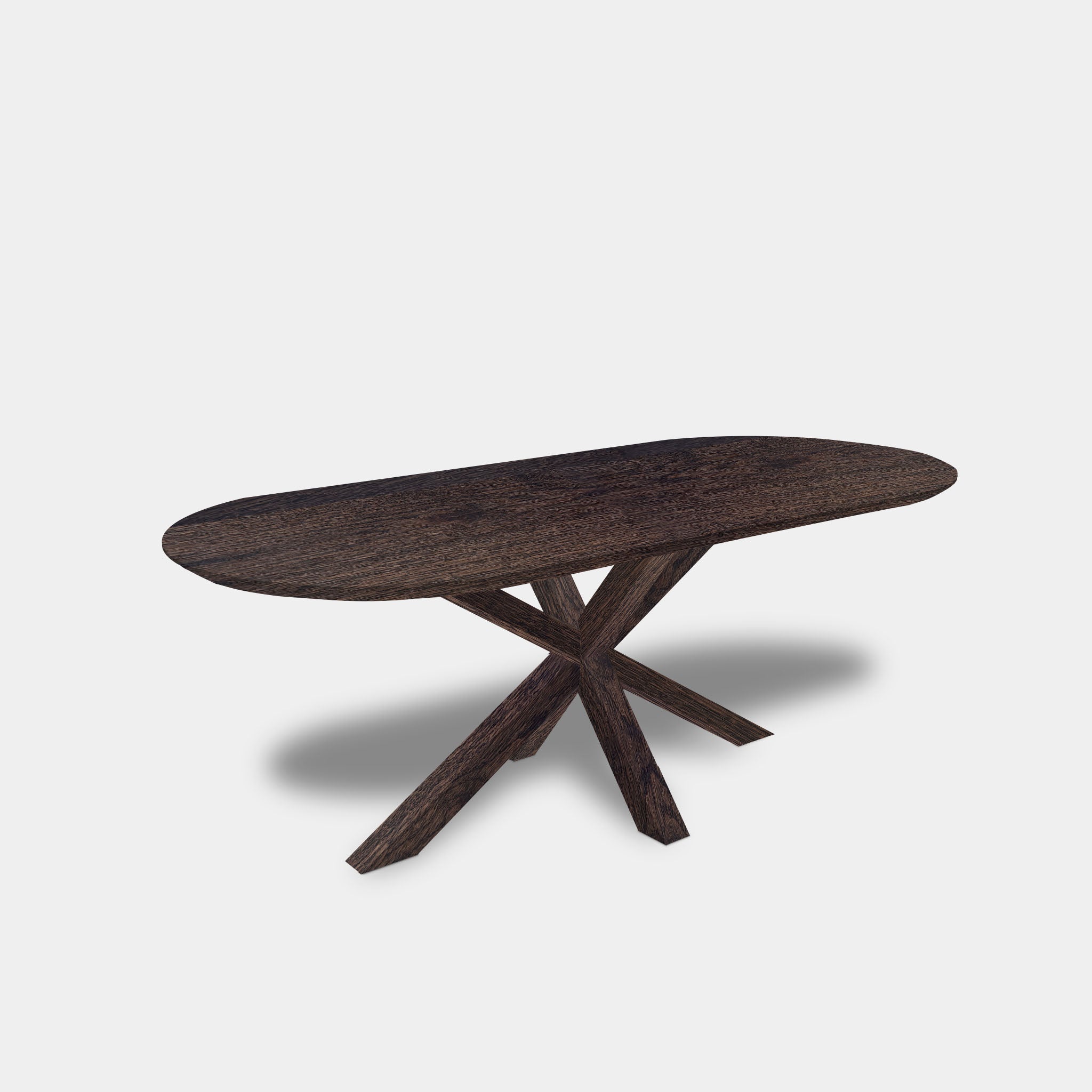 Plat Ovale Eikenhouten Tafel – Kleur: Dear Brown met Houten Matrix Onderstel