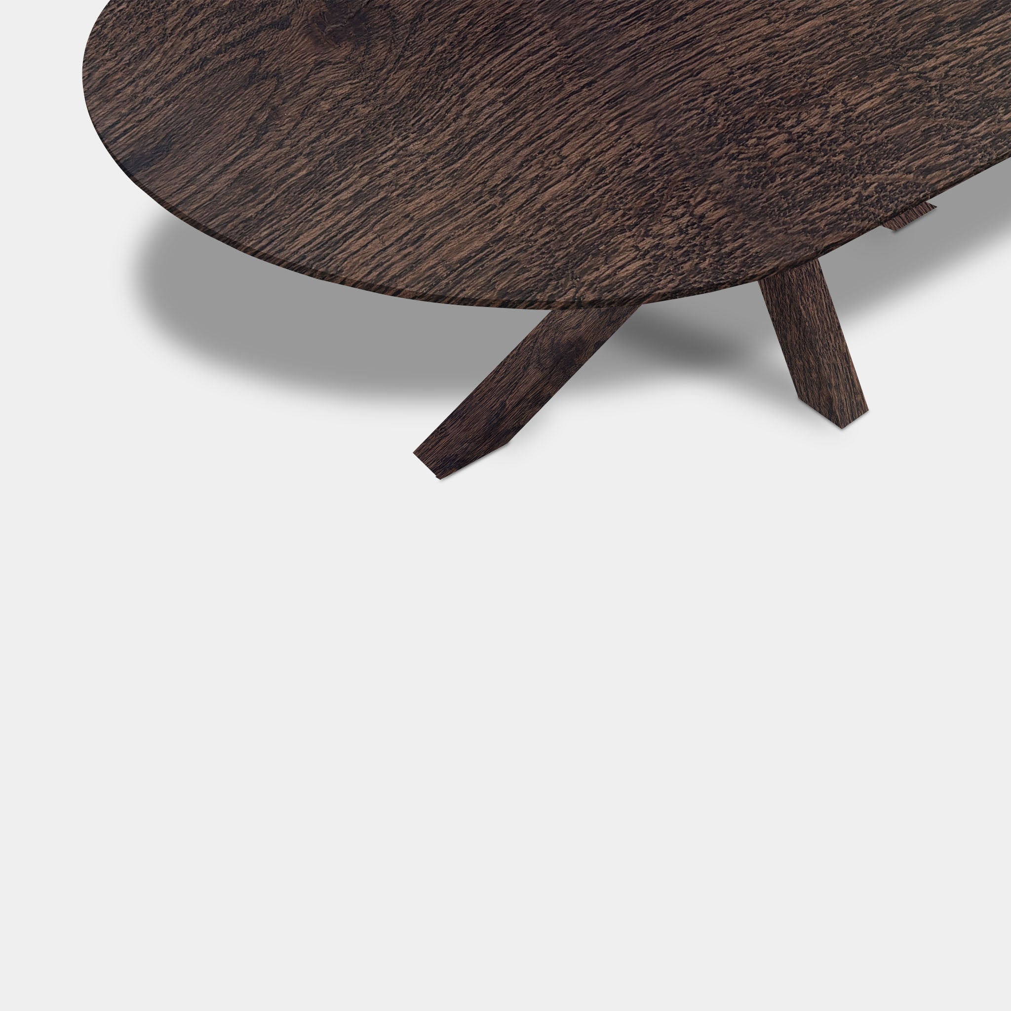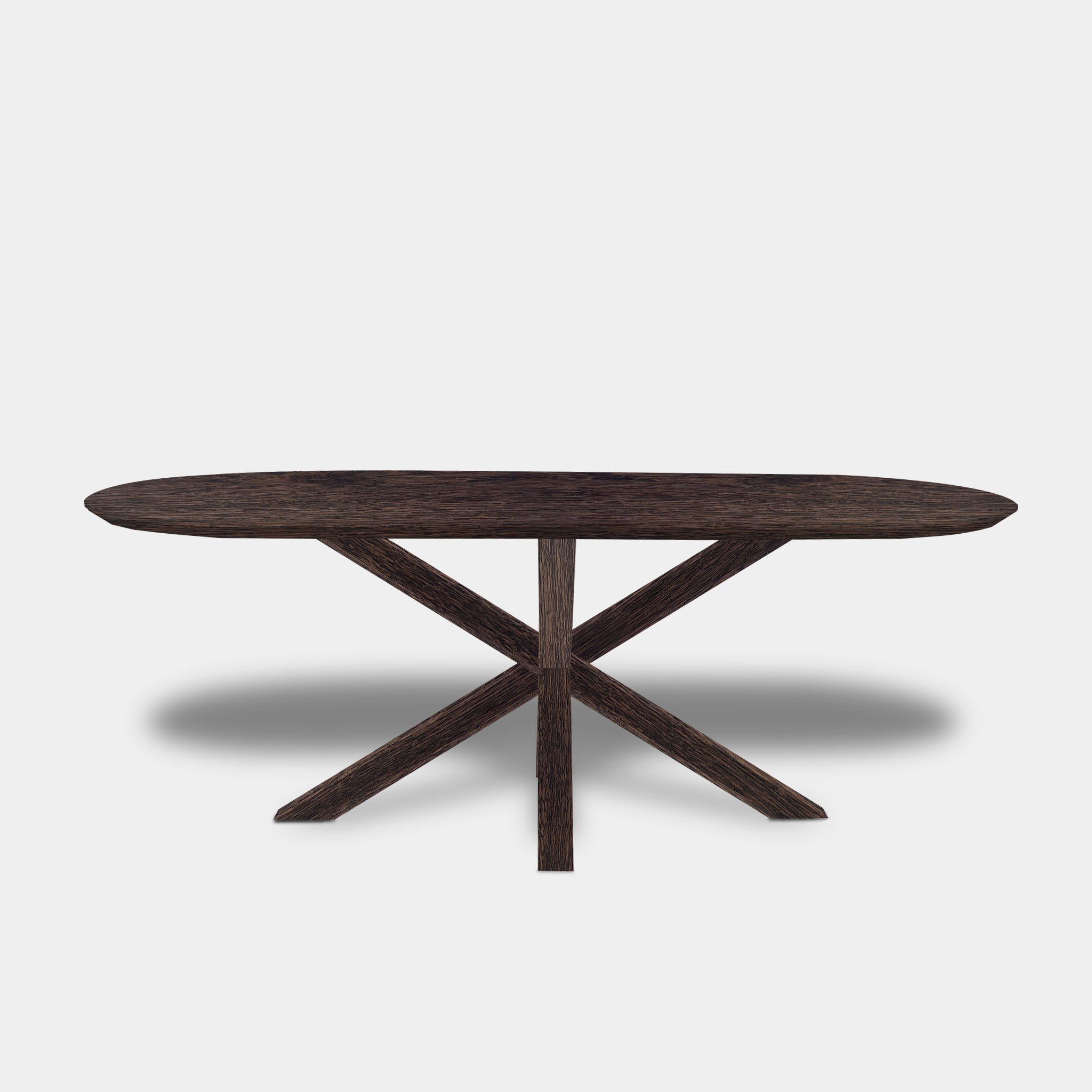 ➡️ Stel jouw plat ovale eikenhouten tafel samen in kleur Dear Brown met houten matrix onderstel